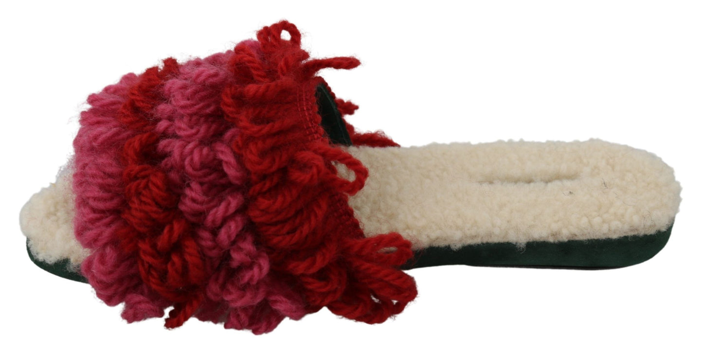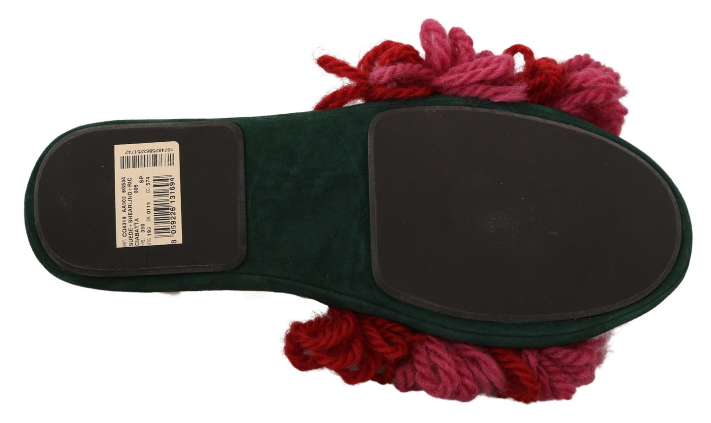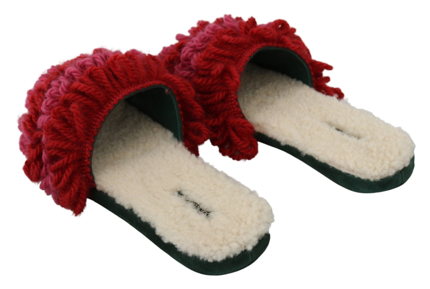 Slide into luxurious comfort with these chic red suede slippers, elegantly designed by Dolce & Gabbana. These cozy slides feature a soft shearling lining for ultimate warmth and comfort. Perfect for adding a splash of color and sophistication to your at-home ensemble. Crafted with expert Italian craftsmanship, these slippers are a testament to both style and quality.