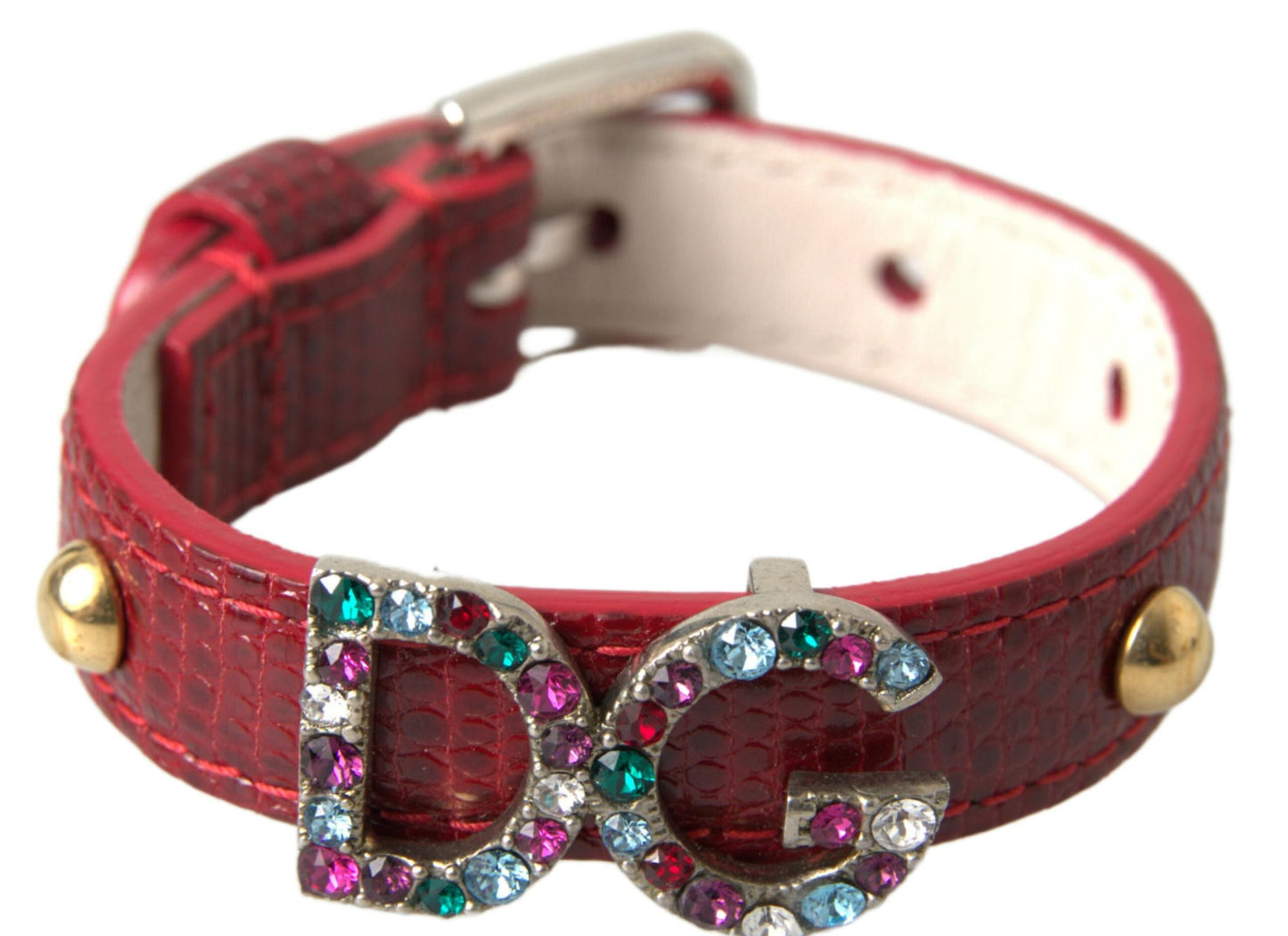 Indulge in the luxury of Dolce & Gabbana with this exquisite red iguana leather wrap bracelet, beautifully adorned with a DG monogram and sparkling multicolor crystals. This piece, crafted from a fine blend of leather, brass, and crystal, offers a durable yet glamorous accessory that resists creasing. It’s the perfect blend of Italian craftsmanship and timeless style for the discerning fashionista.