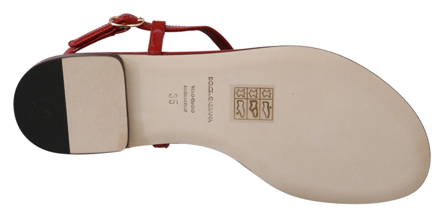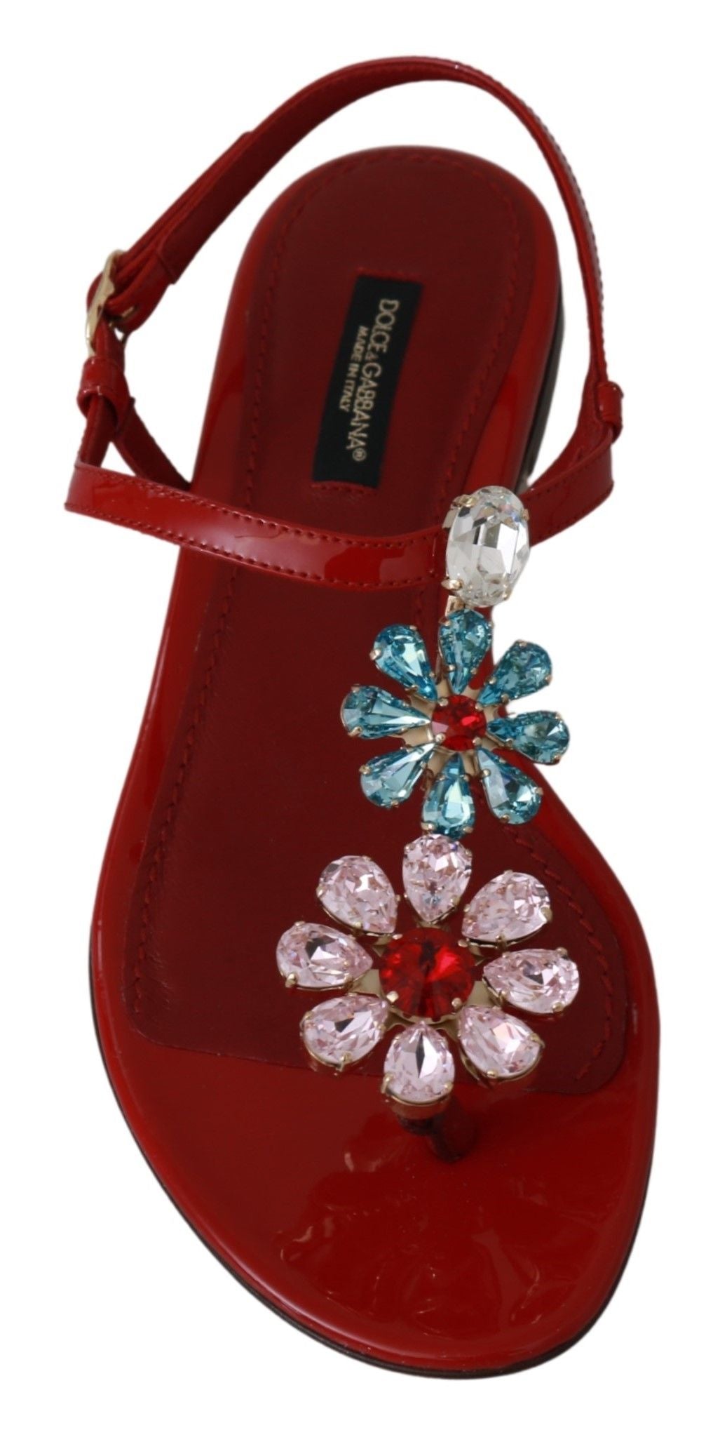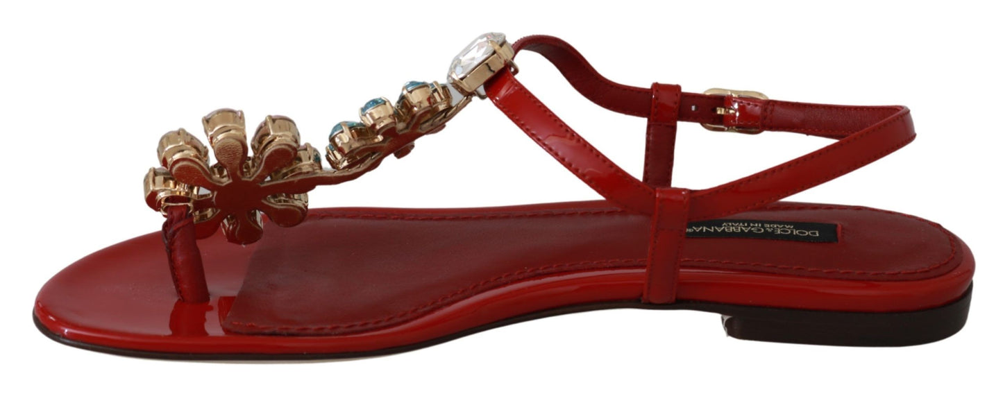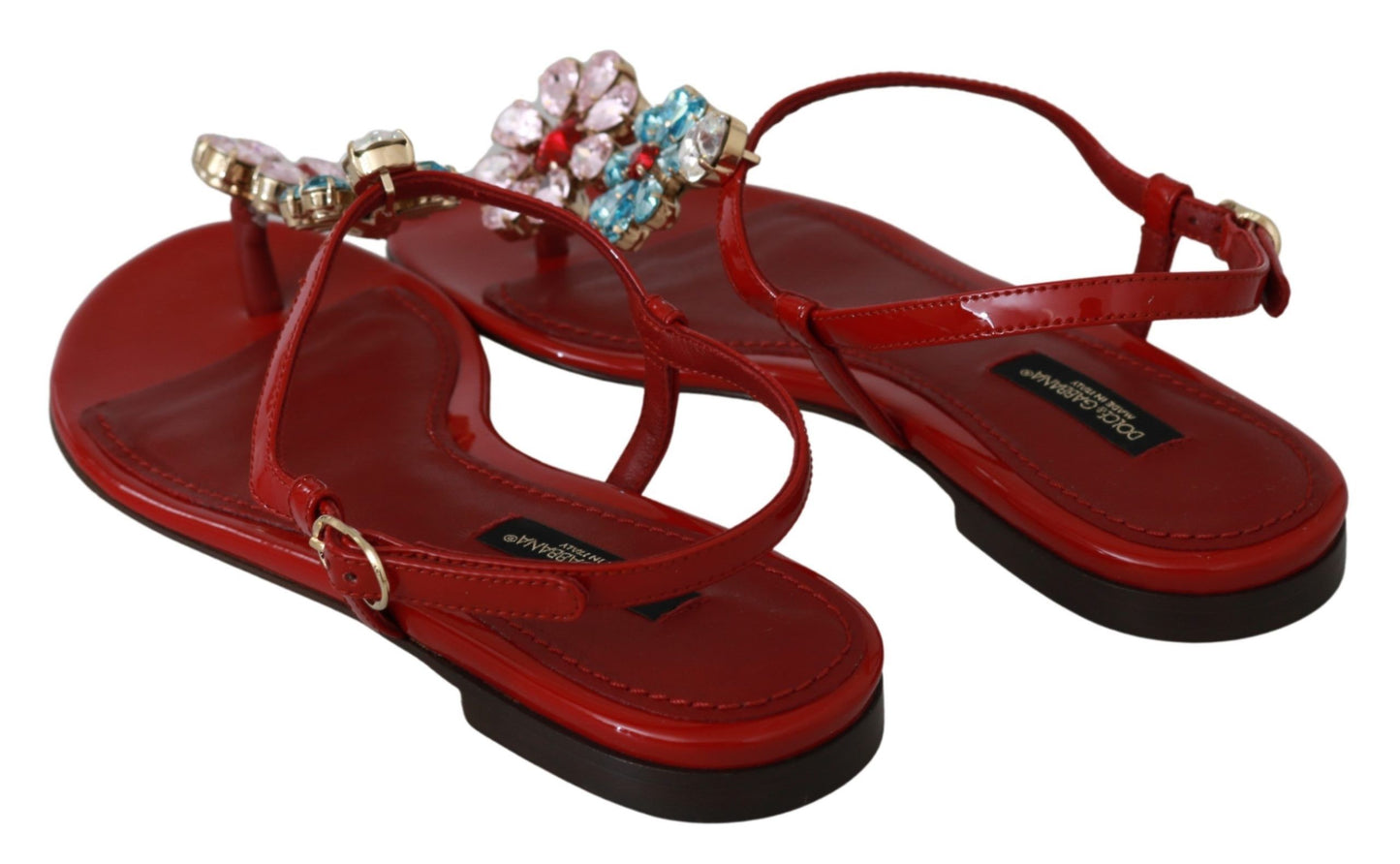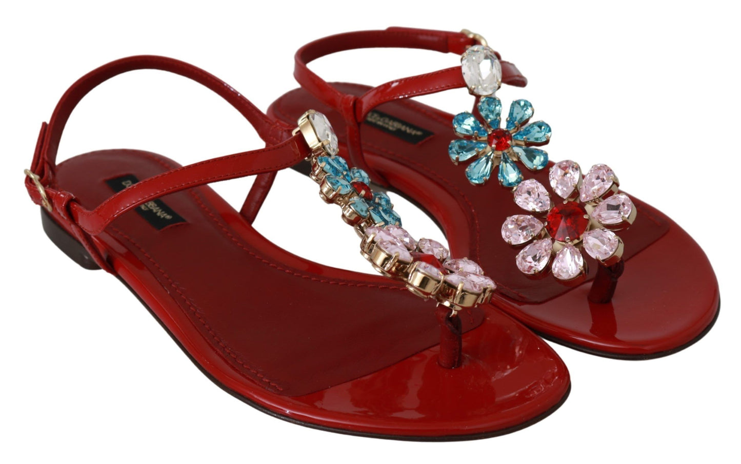 Step into luxury with these stunning Dolce & Gabbana sandals. These are not just any flats; they exude elegance with their vibrant red leather and dazzling multicolor crystals. Perfect for elevating any outfit, these shoes combine comfort with the unmistakable glamor of high fashion. Ideal for those who appreciate the finer details and superior Italian craftsmanship.