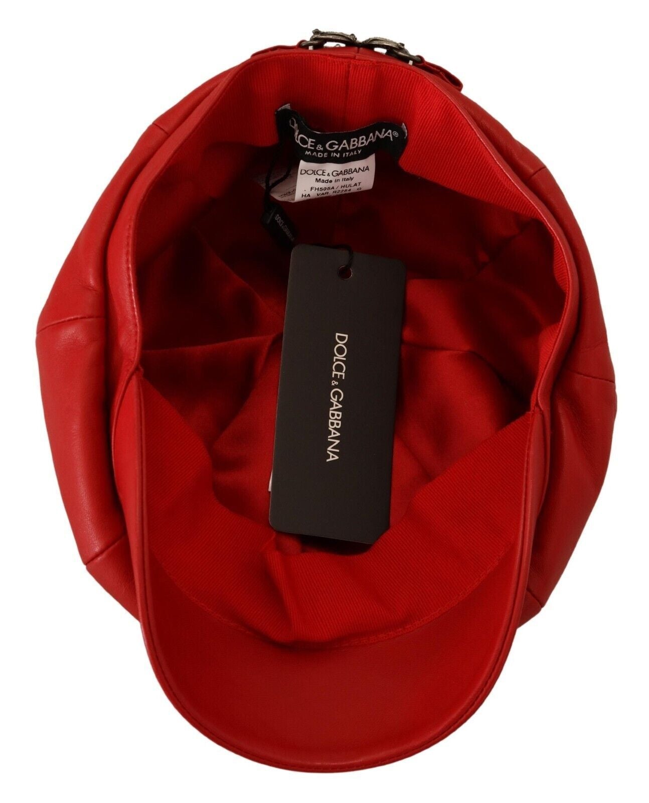 Step out in style with this absolutely stunning 100% authentic cabbie hat from the exclusive MainLine collection of Dolce & Gabbana. Crafted with luxurious red leather and adorned with the brand’s signature logo details, this hat is a perfect blend of elegance and fashion-forward design, made in Italy.