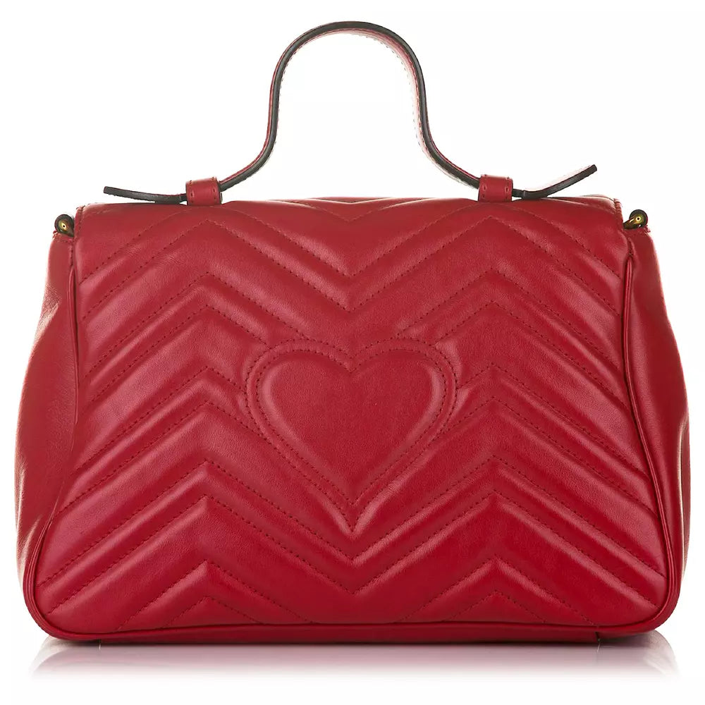 Discover the essence of sophistication with our sumptuous soft red matelassé leather crossbody bag, adorned with a bold chevron pattern. The heart of this stunning piece is the iconic Double G, a modern tribute to the brand’s 70s era belt buckles. Offering versatility, it comes with a detachable chain shoulder strap featuring a leather detail, allowing for an array of styling options. The back of the bag reveals a quilted heart, flawlessly capturing the brand’s penchant for romance and luxury in one symbol.
