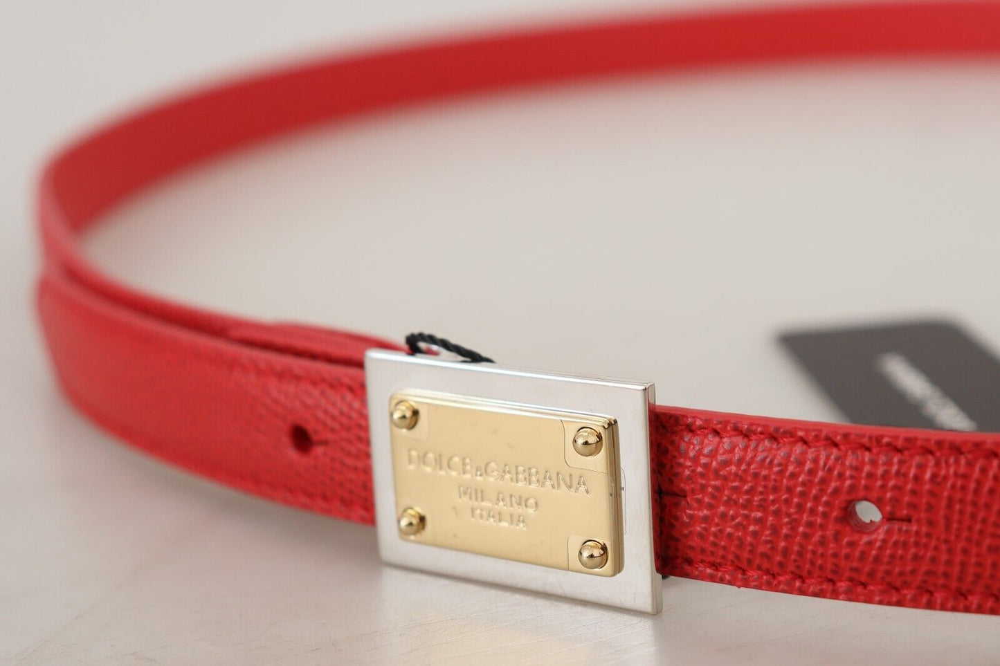 Exude elegance and sophistication with this striking red belt from the house of Dolce & Gabbana. Perfectly blending luxury with functionality, this gorgeous belt comes brand new with tags and a box, ensuring authenticity and high-class quality. The 100% leather composition coupled with the metal logo-engraved buckle embodies the chic design and impeccable craftsmanship Dolce & Gabbana is renowned for. Designed for the modern woman, this belt is a statement accessory that adds a bold touch to any ensemble.