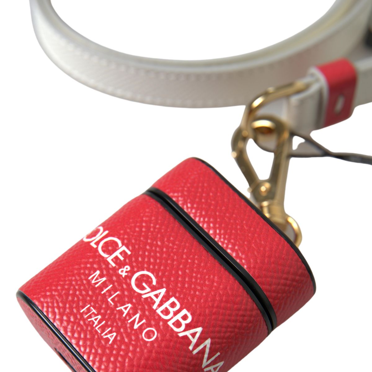 Indulge in the epitome of style with this Dolce & Gabbana Airpods case. Crafted from luxurious leather and showcasing a vibrant red hue, this piece isn’t just an accessory, it’s a statement. With ample room to safeguard your Airpods and a sleek strap for easy carrying, this case combines elegance with practicality. Beautifully enclosed in its original packaging with tags and box, making it perfect for gifting or treating yourself.