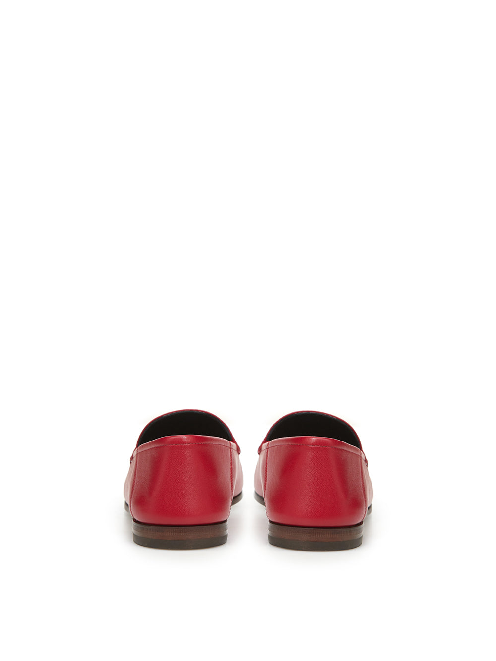 Step out in style with these stunning, brand new, 100% Authentic Red Leather Jordaan Loafers from Gucci. Flaunting a sleek silhouette with a long toe and a low-profile, these loafers feature the iconic Gucci metallic clip emblazoning the front, adding a touch of classic elegance to any outfit. Expertly crafted in Italy, these loafers are a perfect blend of luxury and comfort, making them a must-have for any fashion-forward wardrobe.