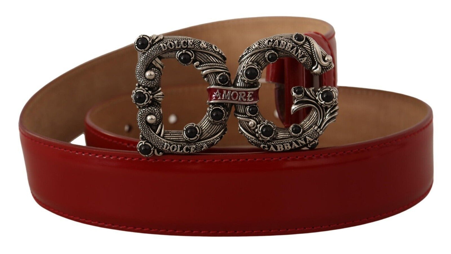 Discover elegance with our enchanting red leather belt, a genuine Dolce & Gabbana accessory that exudes sophistication. This stunning piece sports a vintage-brass logo buckle, accented with an enameled red scroll and adorned with glossy artificial pearls, perfect for adding a touch of glamour to any outfit. Designed for the fashion-conscious woman, it’s a statement piece that’s as functional as it is beautiful.