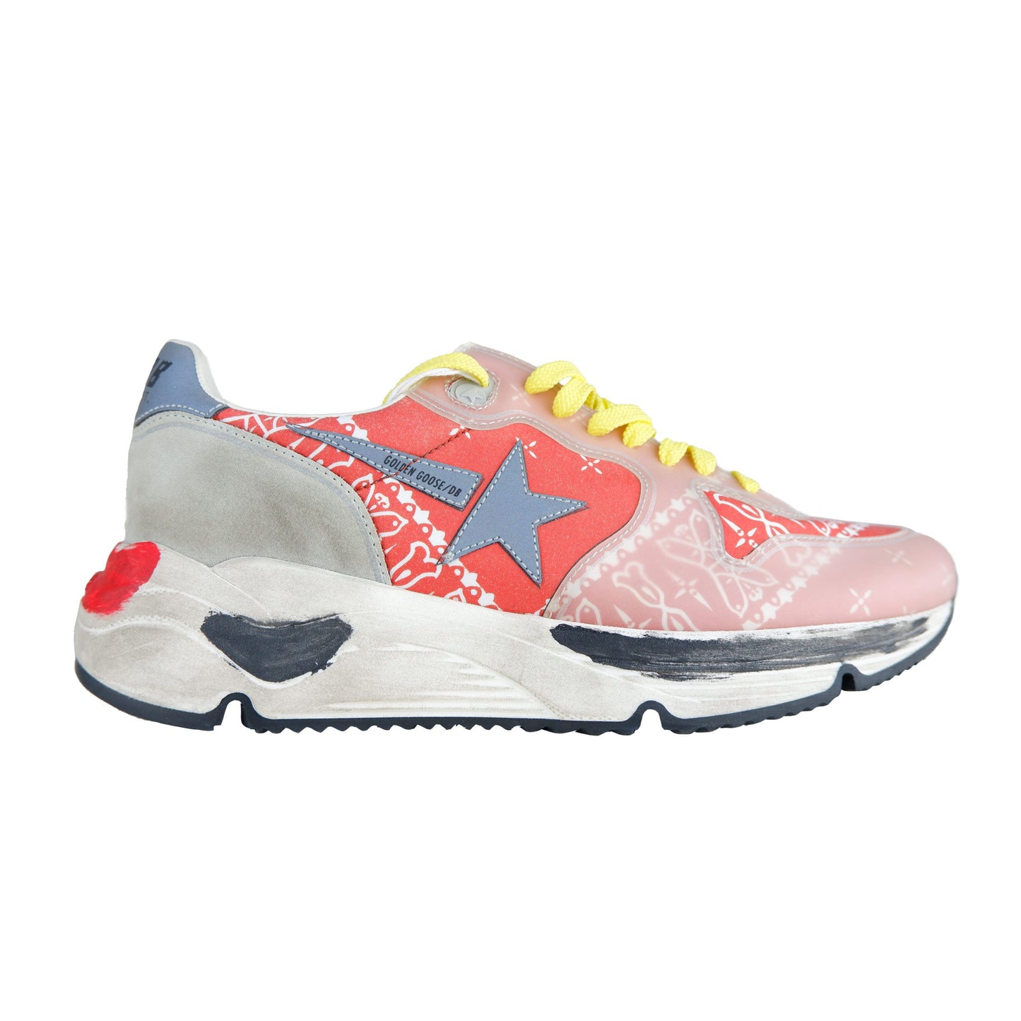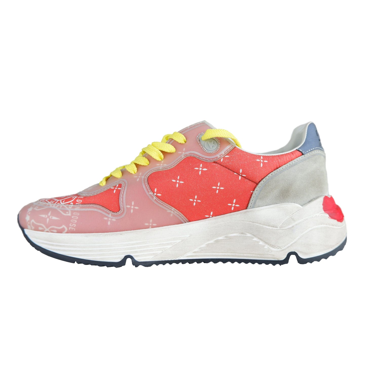 Step into luxury and style with the high-top sneakers from renowned Golden Goose. Crafted with care, these shoes feature a supple suede calfskin body adorned with artistic canvas prints and unique transparent plastic accents. The reflective grey star logo adds that exclusive touch, while the durable rubber sole offers comfort with every stride. Indulge in these Italian-made sneakers for a blend of fashion and quality.