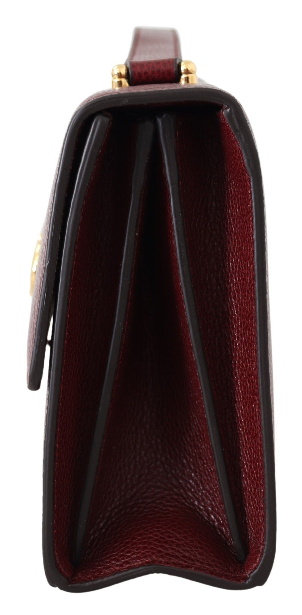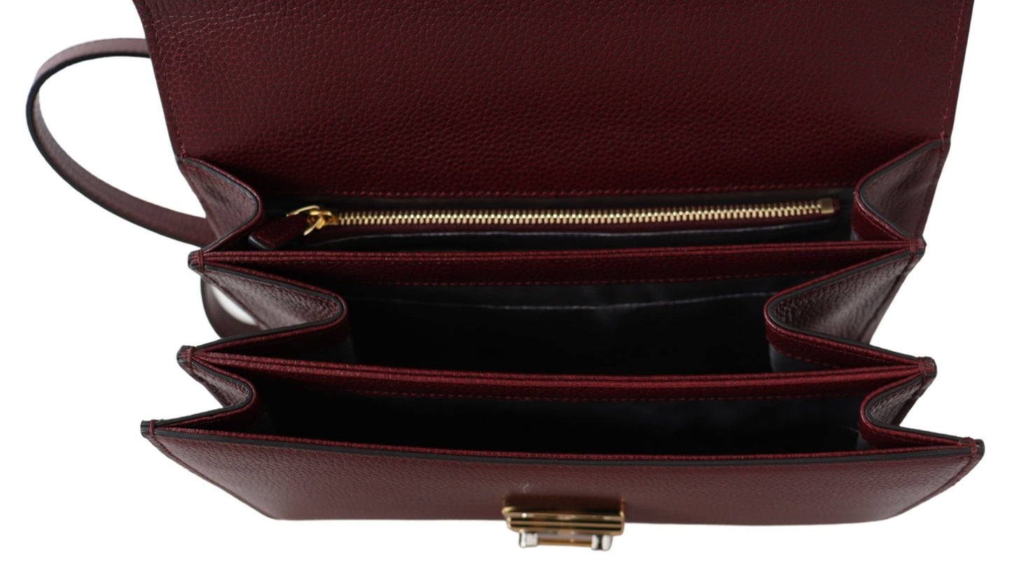 Elegant Smooth Leather Shoulder Bag in Dark Red