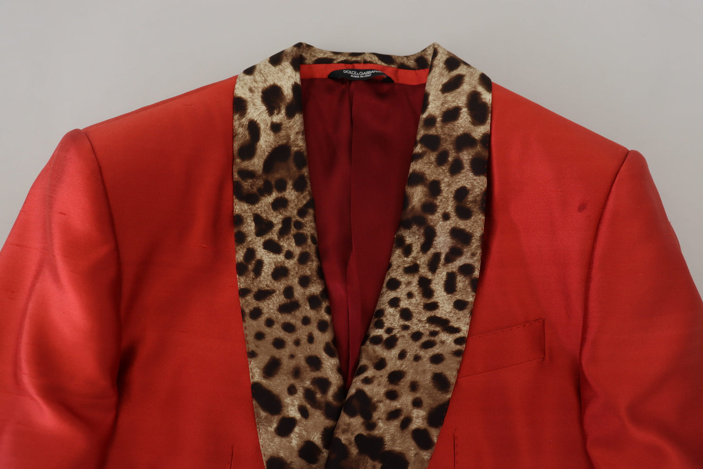 Immerse yourself in the luxury of 100% Italian silk with this exquisite Dolce & Gabbana blazer. Boasting a vibrant red hue adorned with a unique cactus and leopard print, this Sicily style piece brings a touch of Mediterranean flair to your wardrobe. Beautifully tailored, the blazer features a sleek single-breasted design, secured with an elegant front button closure. Dual front pockets add functionality without sacrificing style, while the full silk lining ensures utmost comfort. Logo details subtly highlight its designer pedigree. This piece is not just a garment; it’s a statement, made in Italy to the highest standards of craftsmanship.