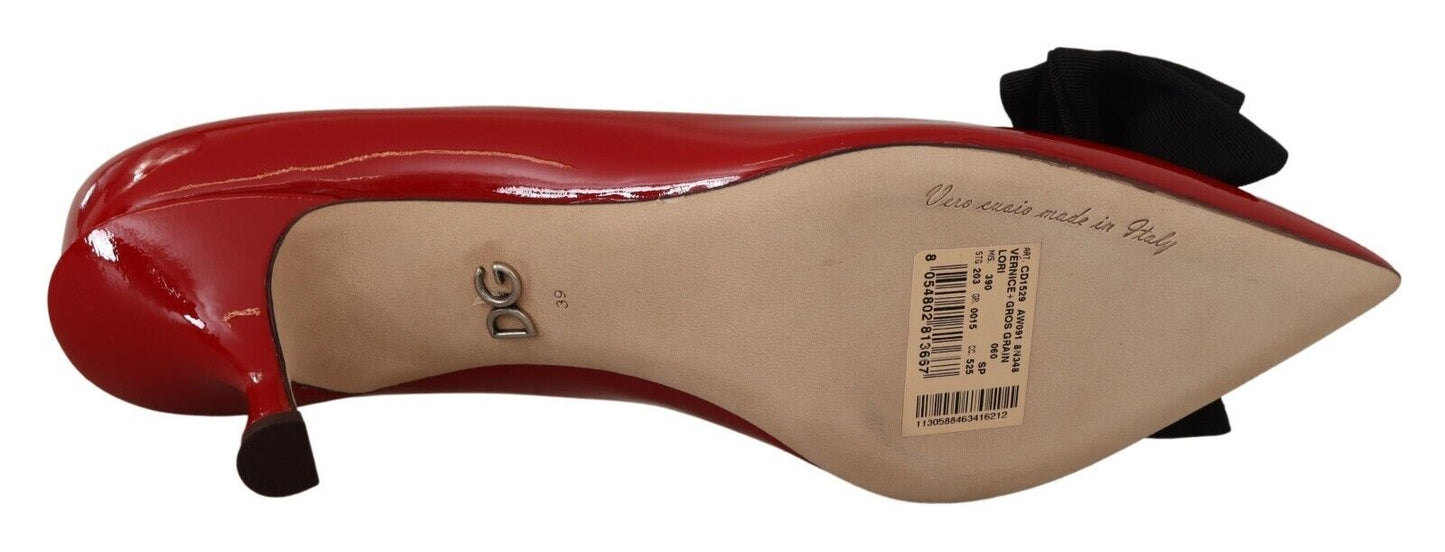 Step into luxury with these stunning Dolce & Gabbana heels, featuring a shiny patent leather finish and an exquisite black bow embellishment. Crafted in Italy, these pumps showcase a blend of high-end quality, comfort, and timeless style, making them the perfect addition to any fashion-savvy wardrobe.
