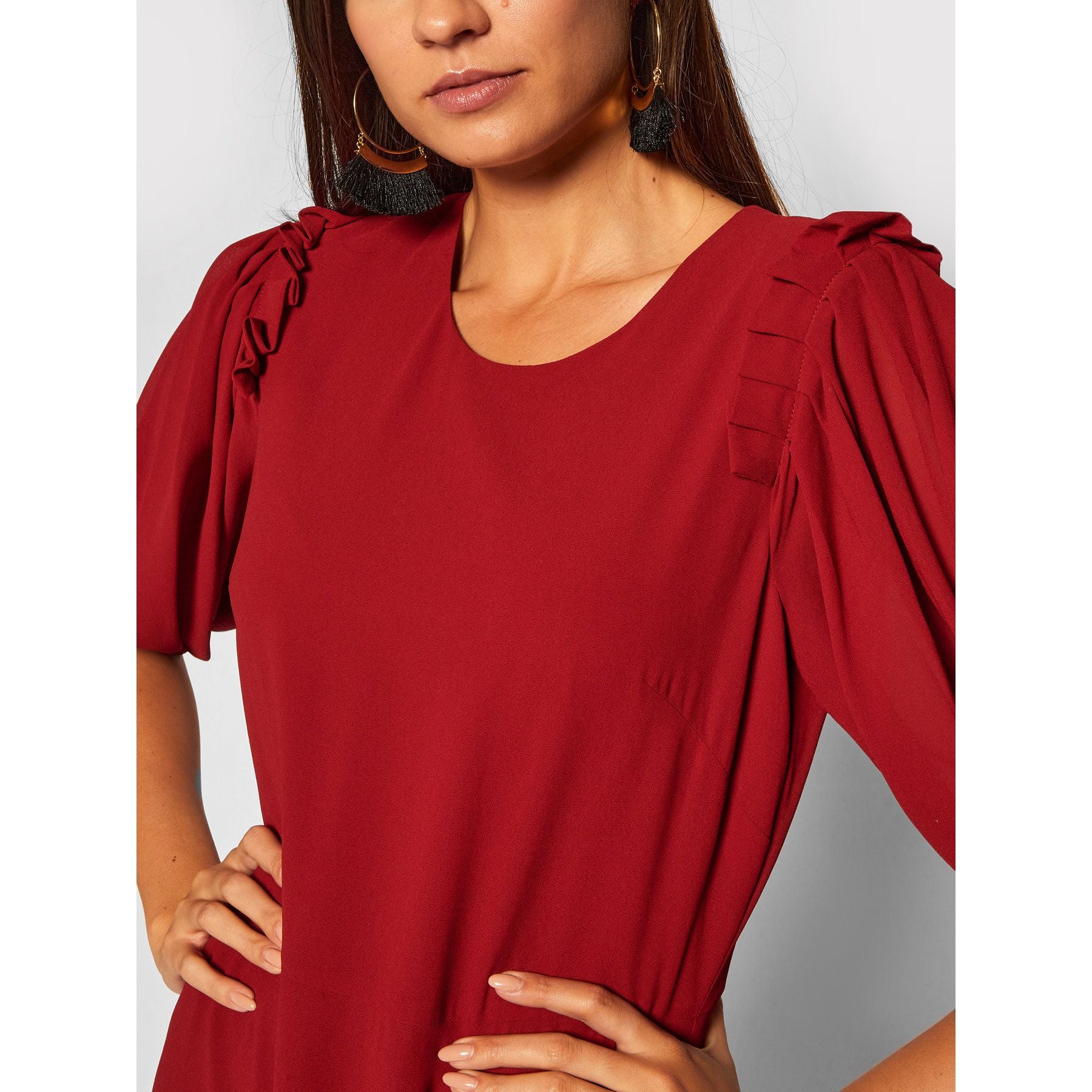 Dazzle at your next special event in this enchanting knee-length tulle dress. With 3/4 sleeves and a delicate veiled effect, this dress exudes sophistication and charm. Its radiant Red Haute color makes a bold statement, ensuring you stand out in elegance.