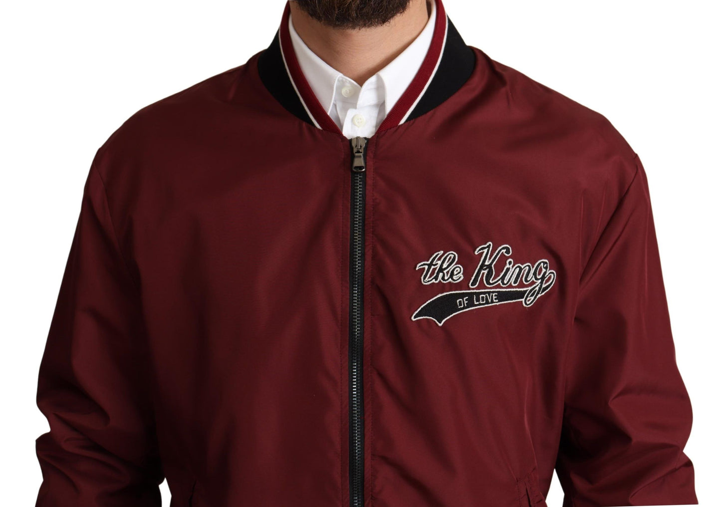 Red Polyester Full Zip Bomber Jacket