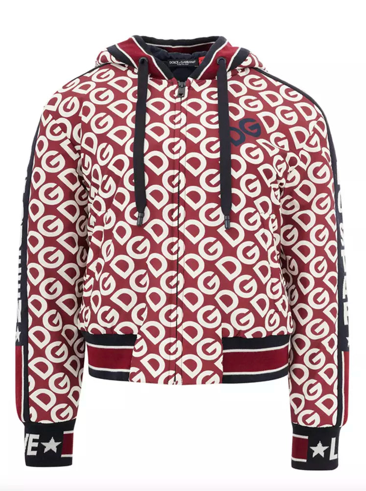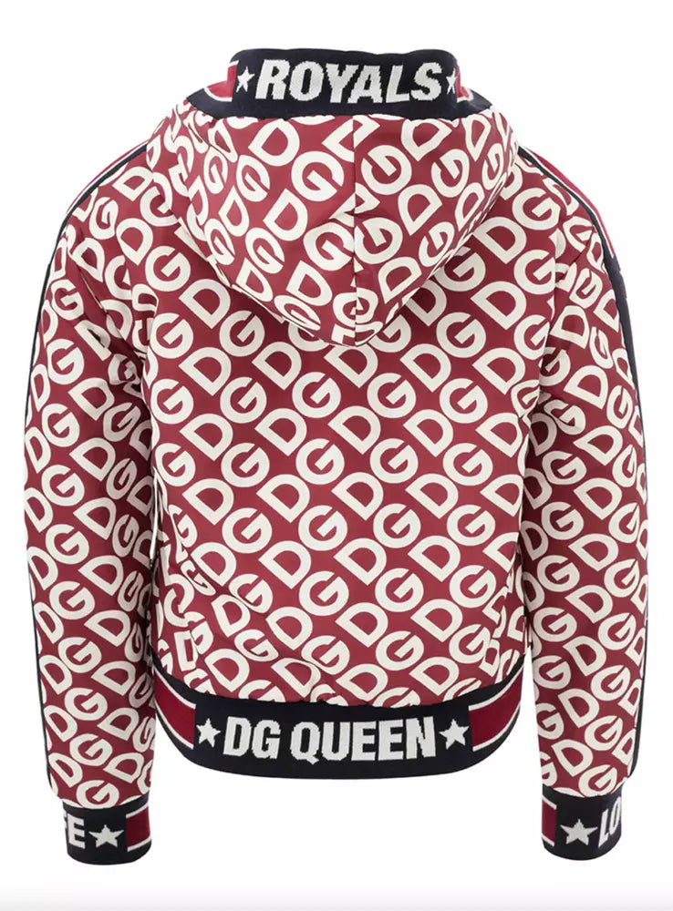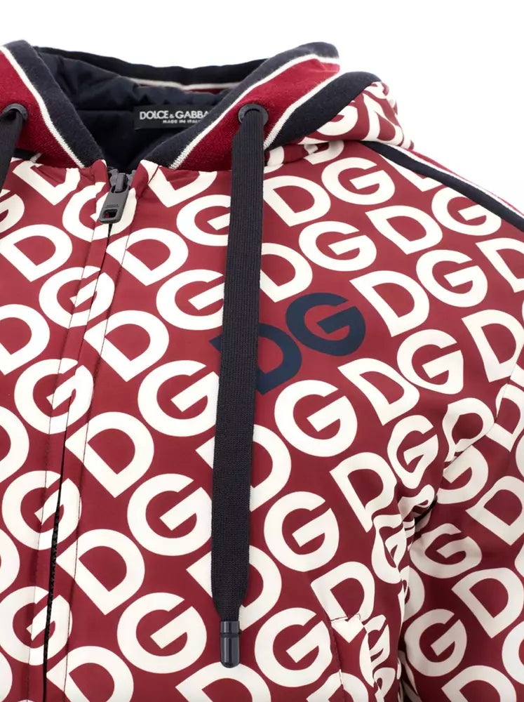 Step out in style with this eye-catching red hooded jacket, showcasing a chic logo design for a touch of luxury. Featuring a convenient two-pocket construction and crafted from high-quality polyester, this Italian-made piece is a perfect blend of comfort and fashion finesse.