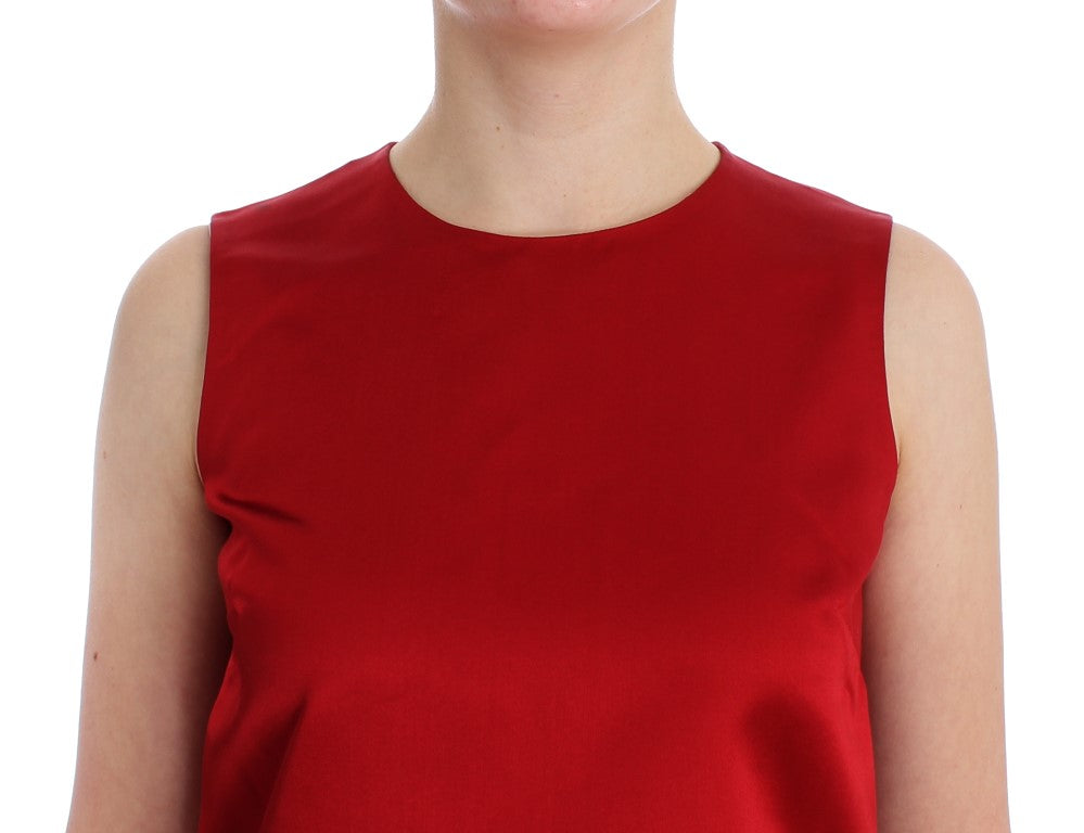 Immerse yourself in the luxurious essence of Italian elegance with this gorgeous, brand new sleeveless tank top, inspired by the iconic Monica Bellucci. Designed by the renowned Dolce & Gabbana, this top is a perfect embodiment of the brand’s commitment to haute couture. Its vibrant red hue is guaranteed to make a statement at any event, while the pure silk material offers an unmatched level of comfort and sophistication. Detailed with a seamless back zipper and the distinguished Dolce & Gabbana logo, this blouse is crafted with precision and care in Italy, bringing a touch of Sicilian charm to your wardrobe.