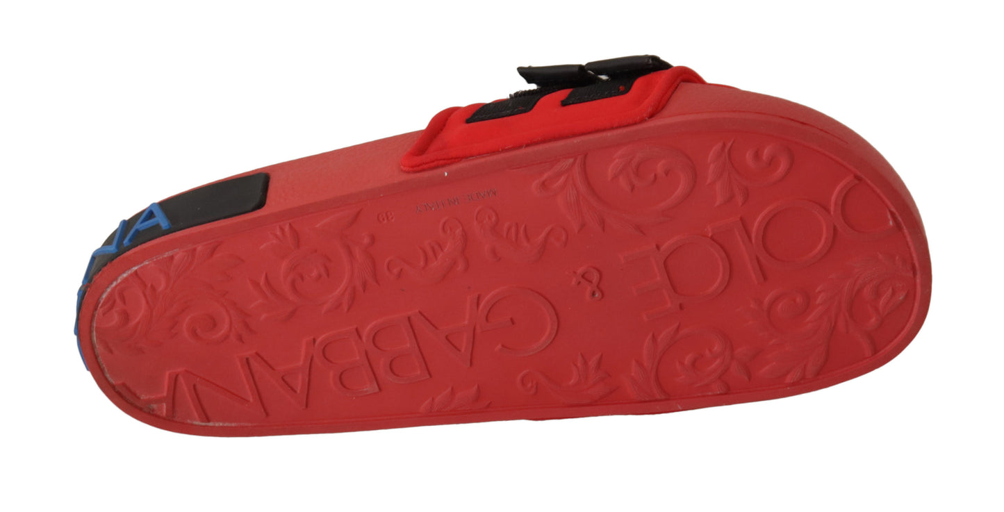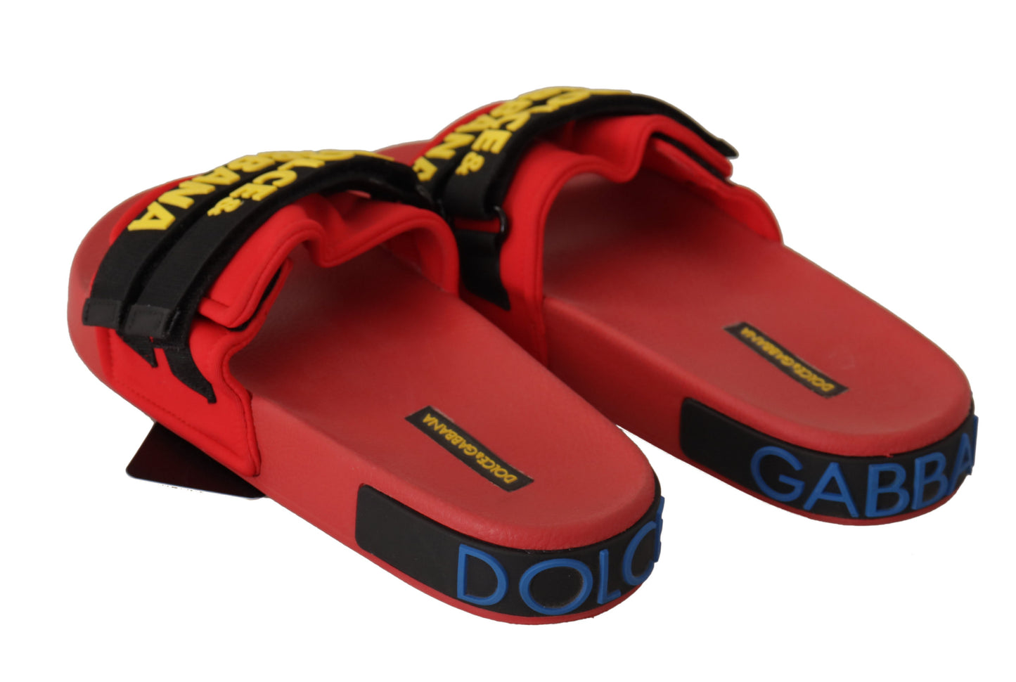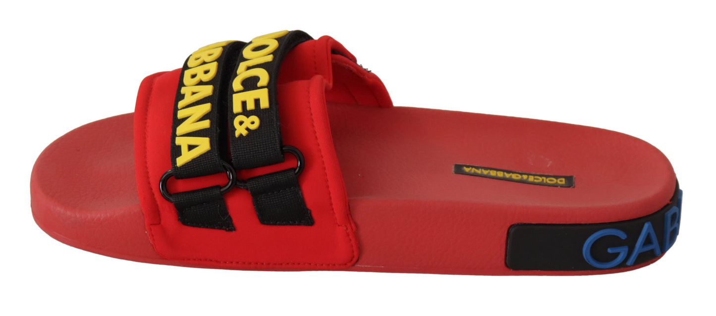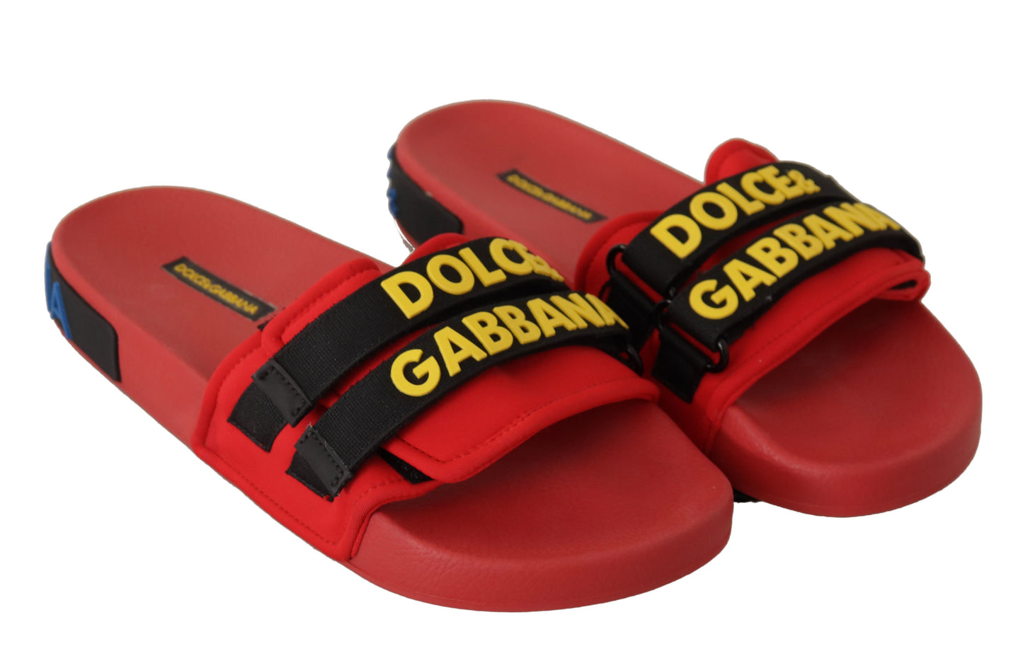 Elevate your summer style with these stunning new slide sandals by Dolce & Gabbana. A chic red hue with impeccable logo details, these sandals are a gorgeous addition to any wardrobe. Crafted in Italy, they blend luxury with comfort, making them perfect for those seeking both status and practicality in their footwear.