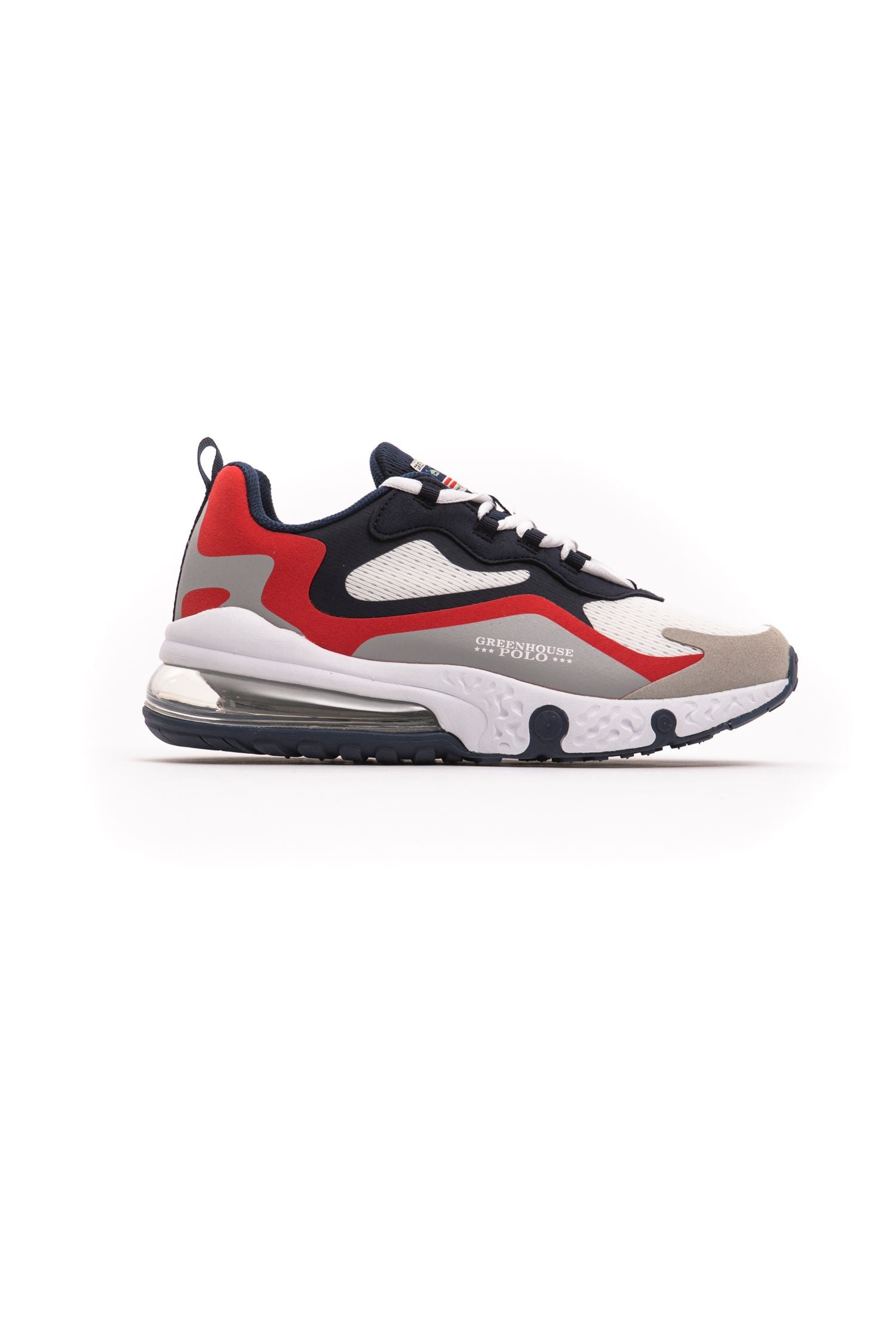 Experience both style and comfort with these vibrant Red Sneakers from Greenhouse Polo. Perfect for daily wear, these sneakers come with a round tip, classic lacing, and a rear tongue for easy slip-on. The highlight feature is the innovative heel cushion with air-sole technology, providing a seamless walking experience and added height with its subtle 3 cm heel.