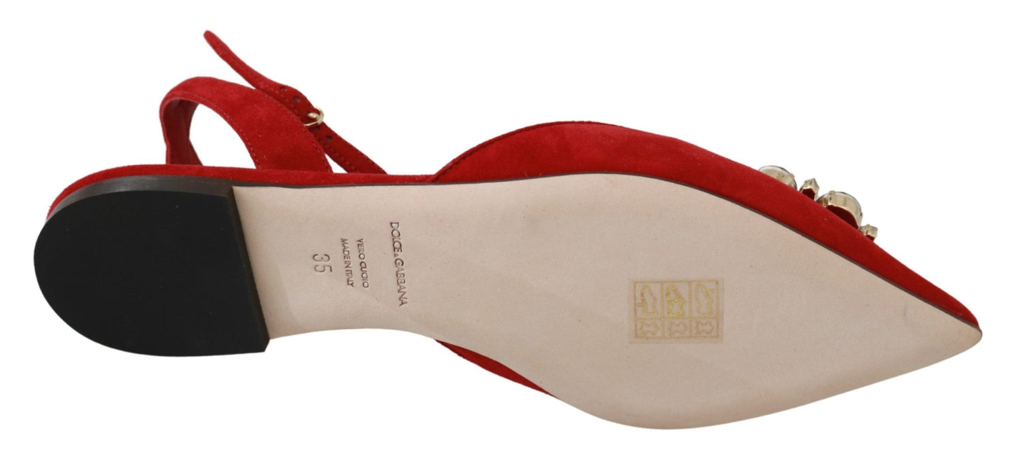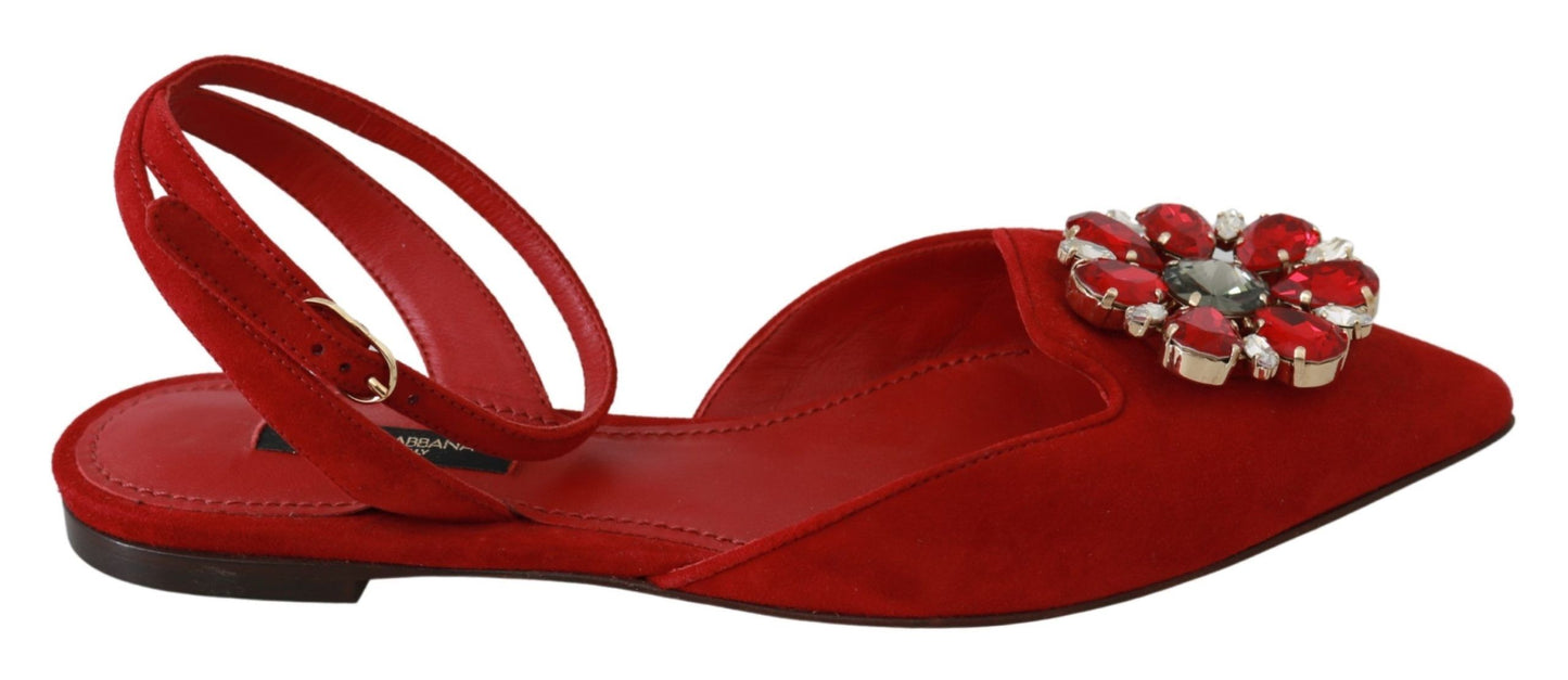 Step out in elegance with these luxurious Dolce & Gabbana sandals, perfect for adding a splash of glam to any outfit. Adorned with stunning red and clear crystals that beautifully capture the light, these flats are not only gorgeous but also embody Italian craftsmanship.