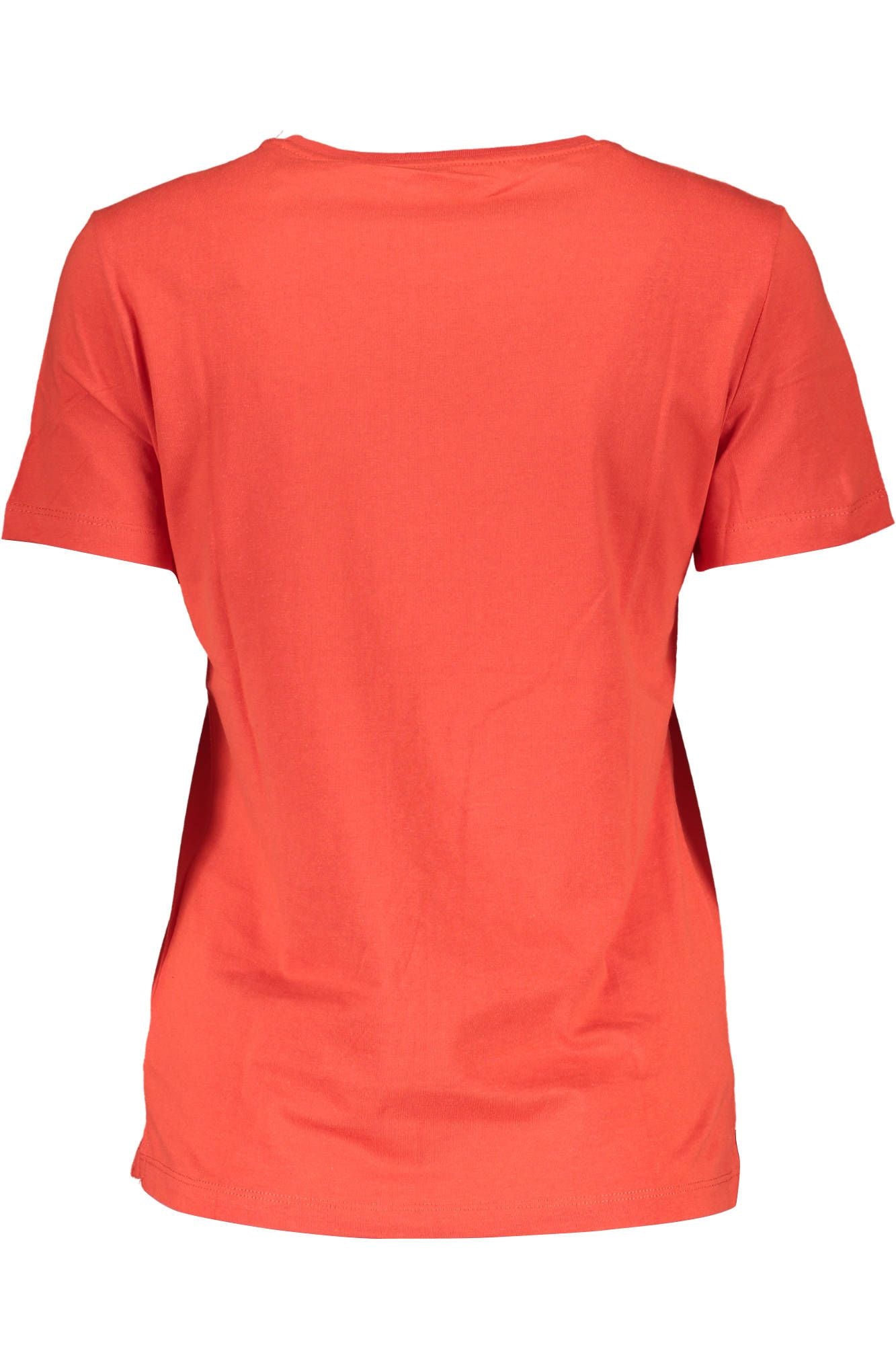 Elevate your casual wear with this eye-catching red t-shirt featuring a bold print and the iconic Guess Jeans logo. Perfect for a laid-back yet stylish look.