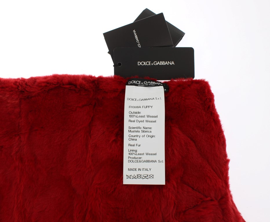 Envelop yourself in the opulence of this striking red hooded scarf wrap, a masterpiece from the exclusive MainLine collection by Dolce & Gabbana. Crafted from the finest weasel fur, this luxurious accessory promises to elevate your ensemble with its distinct elegance and warmth. Complete with logo details and a practical 2-button closure, it’s crafted in Italy, ensuring the pinnacle of quality and style.