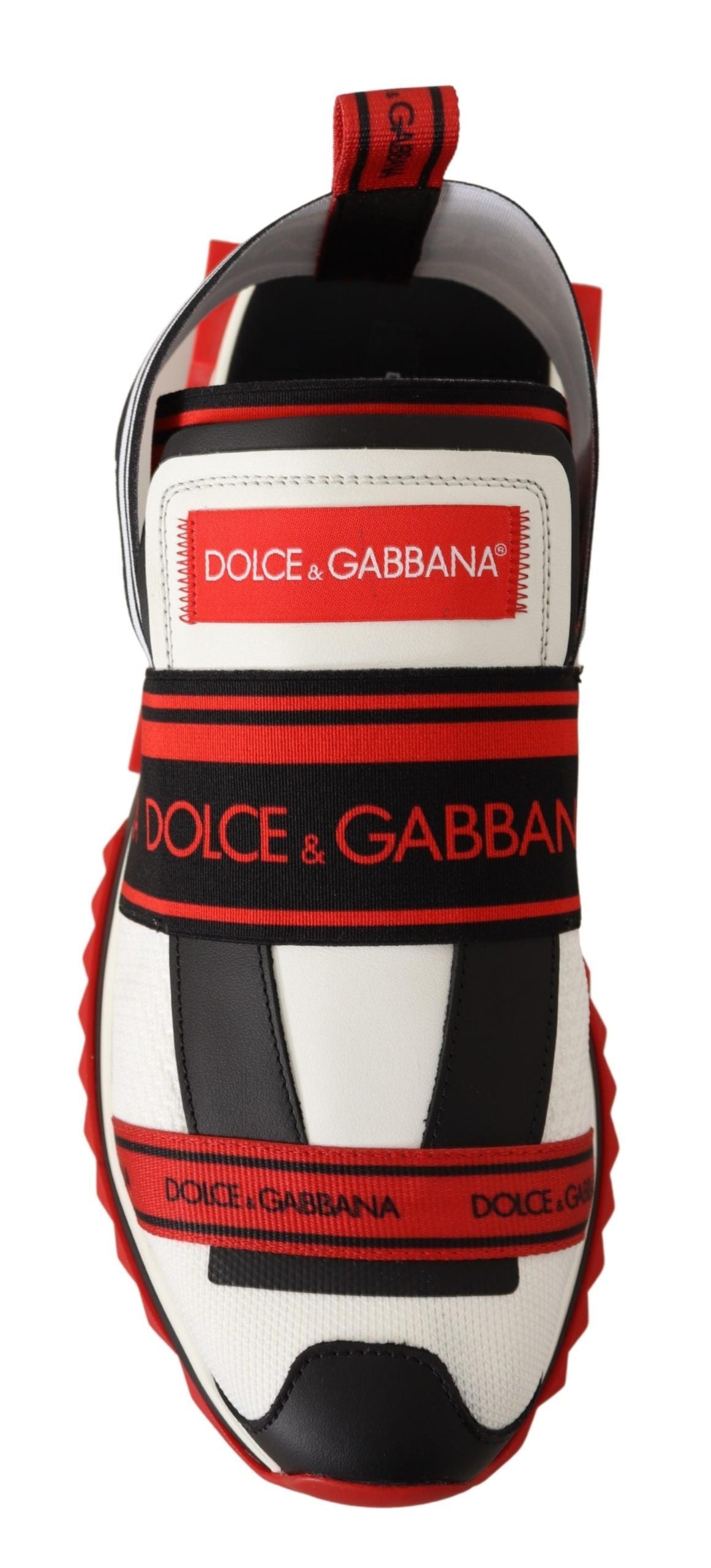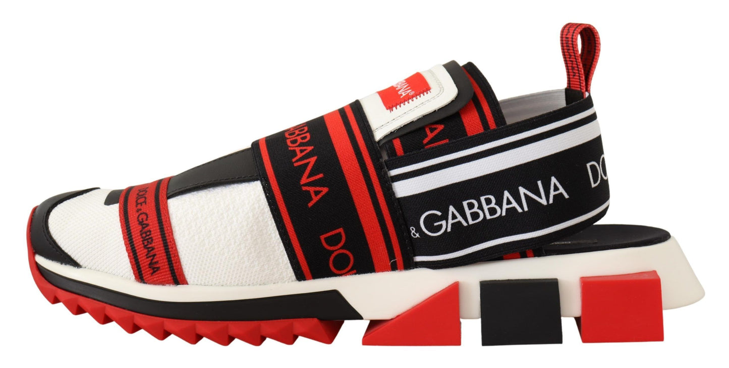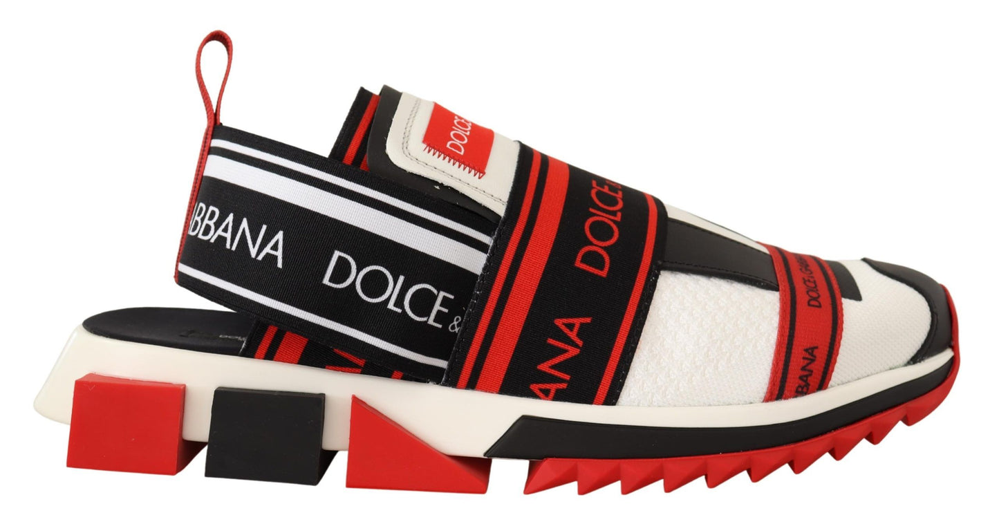 Step into luxury with these eye-catching Sorrento Sneakers from Dolce & Gabbana. These standout sneakers are more than just footwear; they’re a fashion statement. Blending the comfort of slip-ons with the structure of a sneaker, they feature elastic bands that make laces obsolete, while the unique open back design allows for easy transition into the warmth of summer. The iconic brand’s touch is evident in the decorative ribbons, adding an extra layer of sophistication to your look.