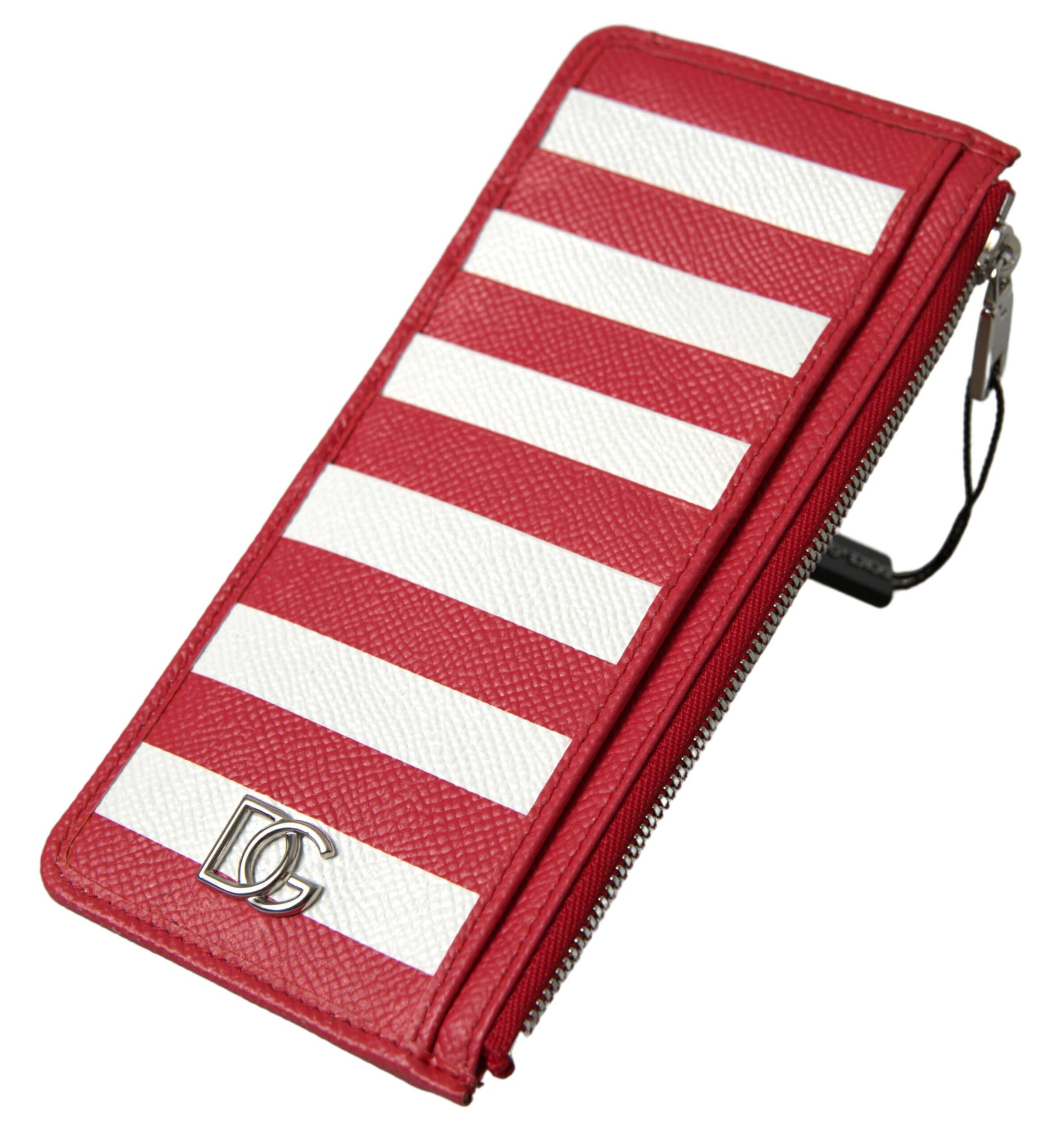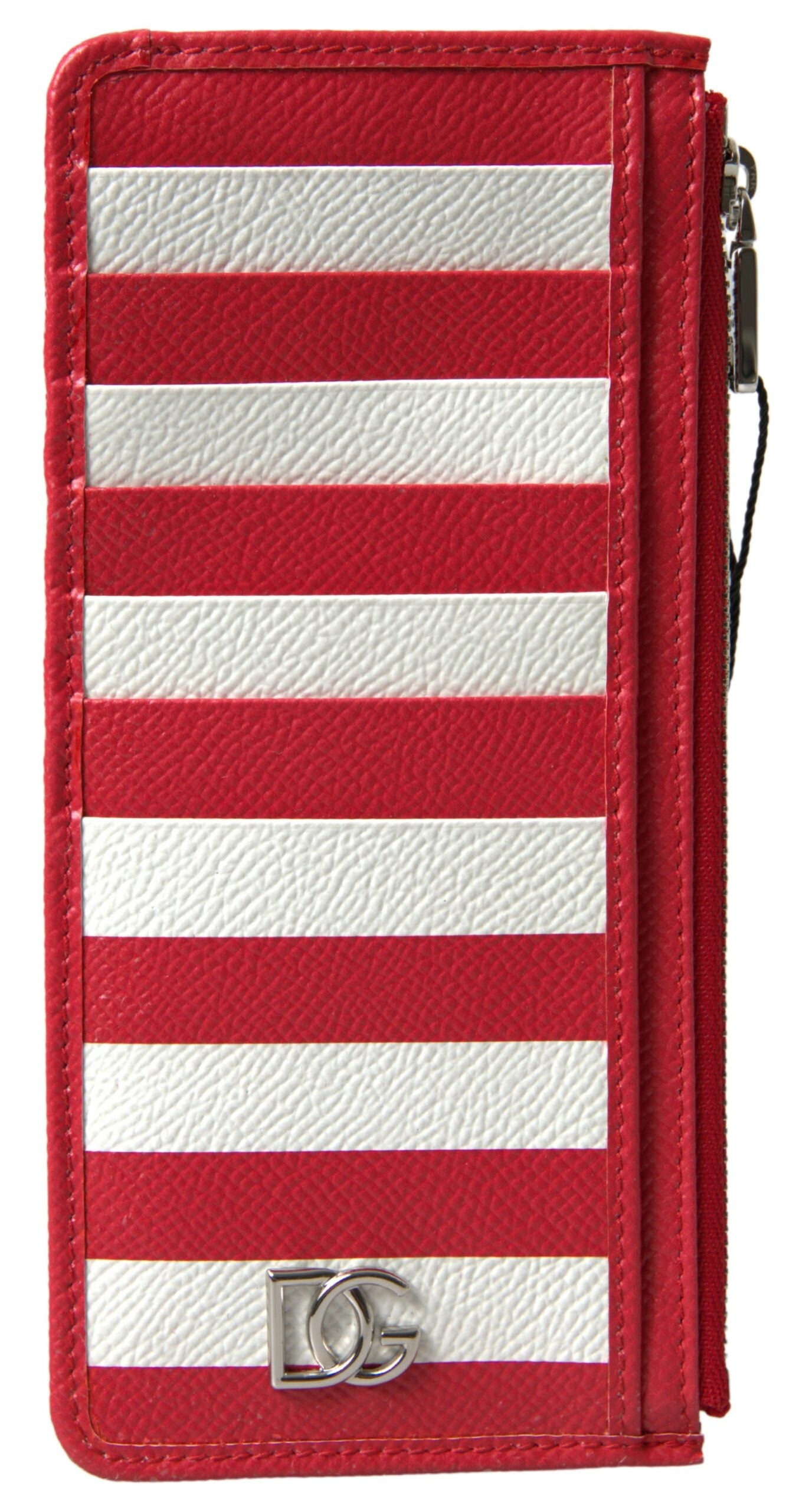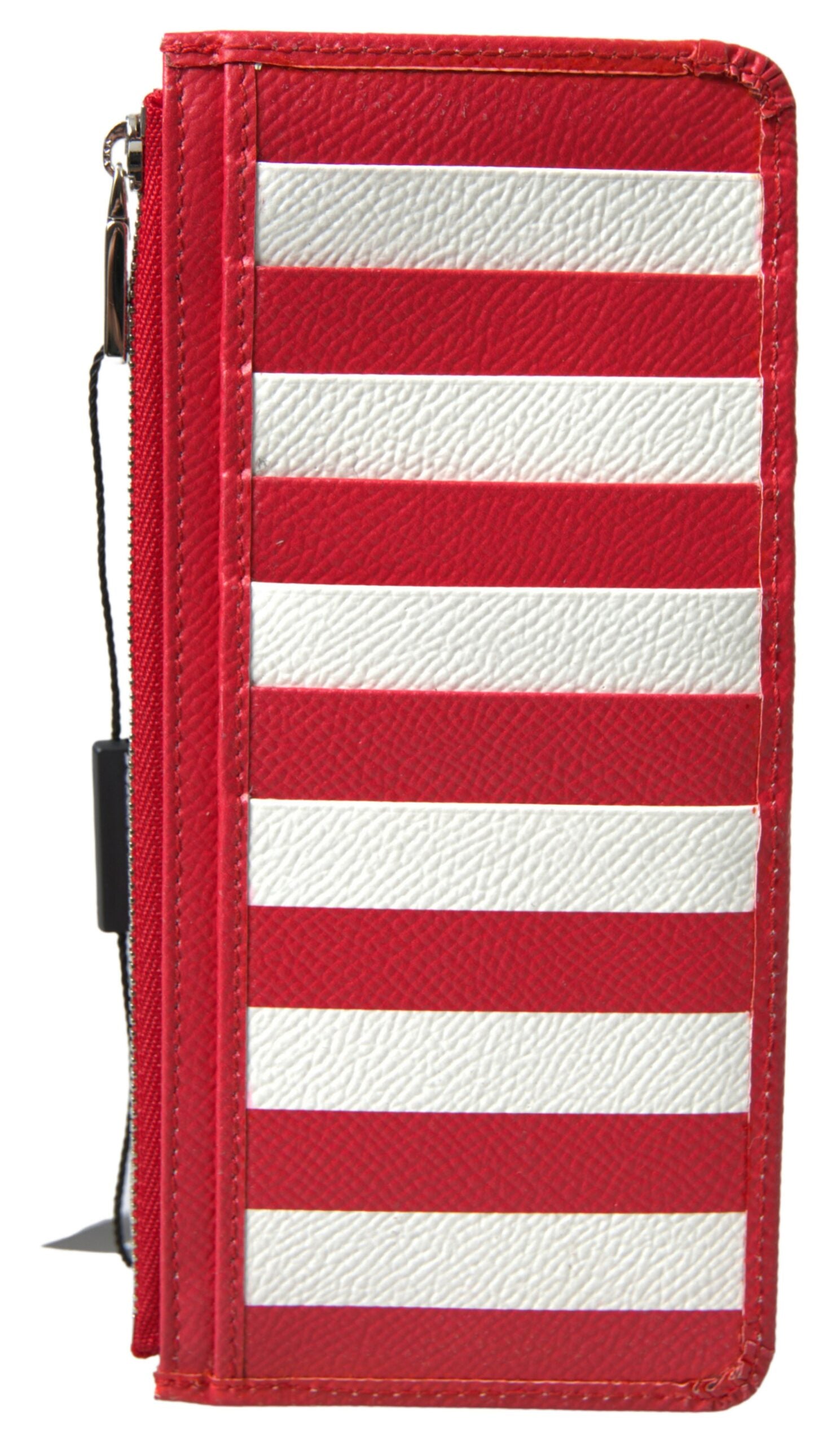 Experience the perfect blend of luxury and functionality with this elegant striped leather card holder from the renowned fashion house, Dolce & Gabbana. The chic red and white design not only carries your cards but does so with an unmatched style. This wallet is not just a fashion statement, it’s a testament to impeccable craftsmanship and Italian elegance, ready to accentuate your everyday essentials.