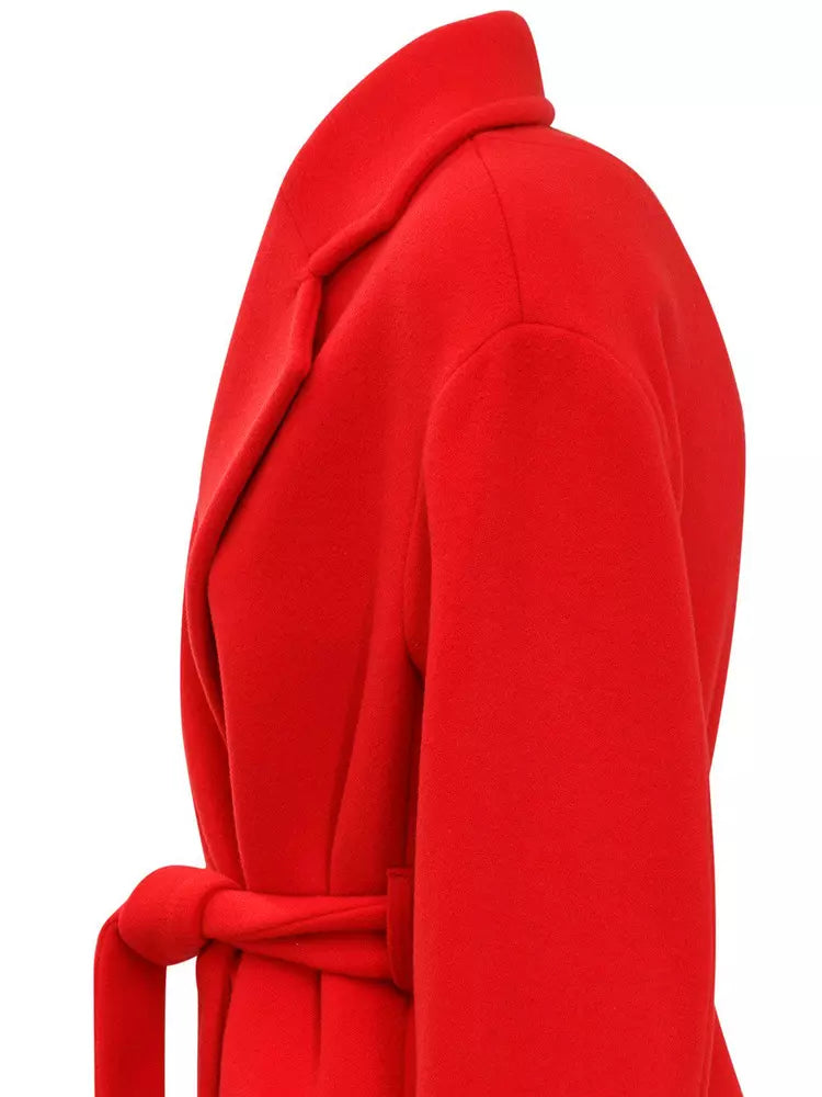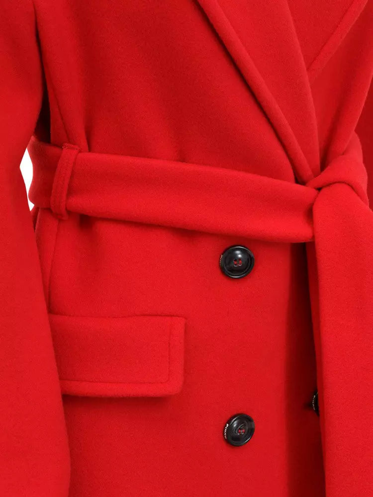 Step out in style with this plush wrap coat, crafted from a sumptuous wool blend velor. Featuring a classic lapel collar and double-breasted button closure, it also offers a matching belt to cinch your waist for a flattering silhouette. Functional flap pockets add a practical touch to this elegant piece, which is fully lined for your comfort.