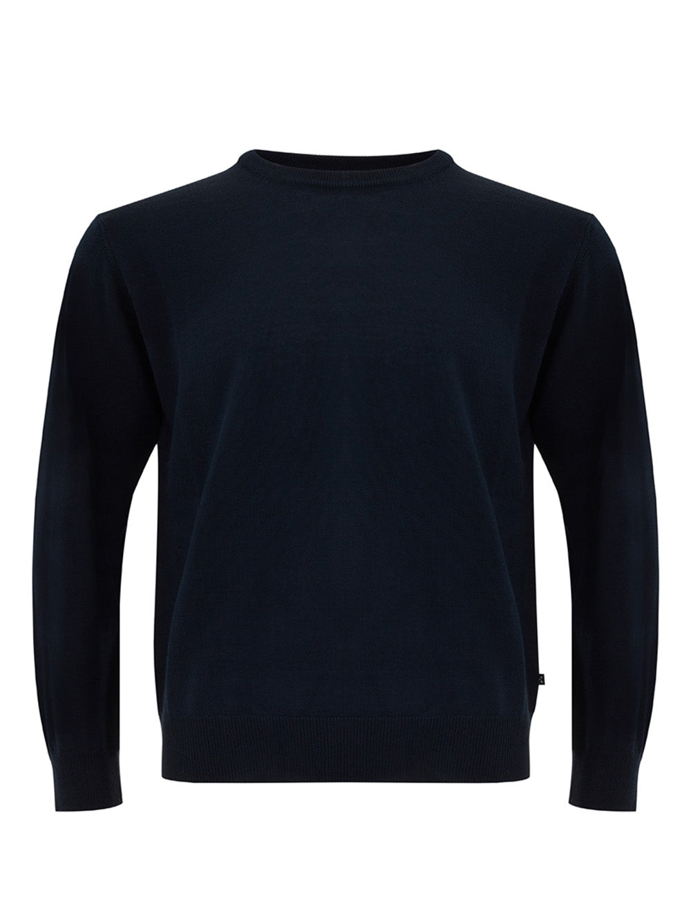 Elegant Blu Wool Round Neck Jumper - Regular Fit