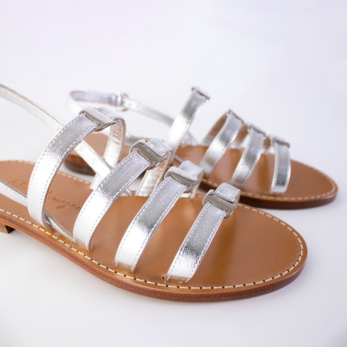 Step into luxury with these stunning Salvatore Ferragamo Galilee sandals. With their eye-catching silver hue, they blend classic elegance with contemporary style, perfect for standing out in any sophisticated setting. Expertly crafted in Italy from premium leather, these beautiful sandals are not only a fashion statement but also a testament to quality craftsmanship.