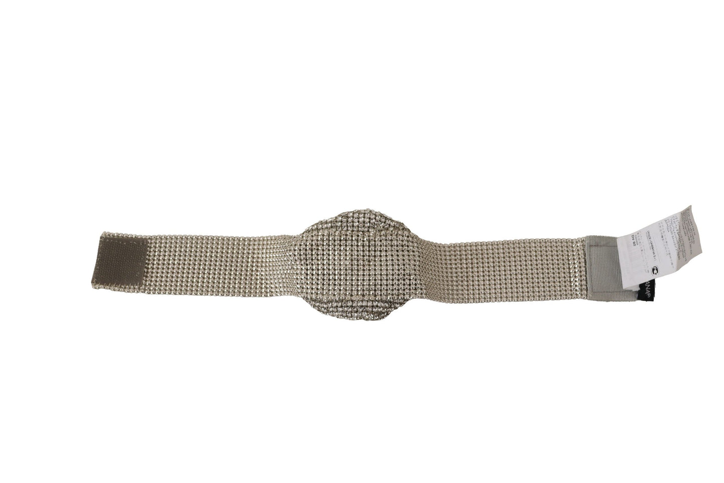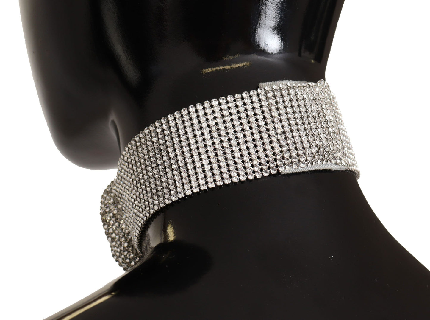 Adorn your neckline with the opulent touch of an Dolce & Gabbana crystal choker necklace. Gleaming with exquisite craftsmanship, this 90% crystal and 10% brass piece accents any ensemble with a dash of sophistication. Its silver hue and clear crystals cast a luminous charm that’s signature to the luxury label. Designed for elegance and secured with a velcro closure, this Italian-made jewelry adds a statement to both day and evening wear.