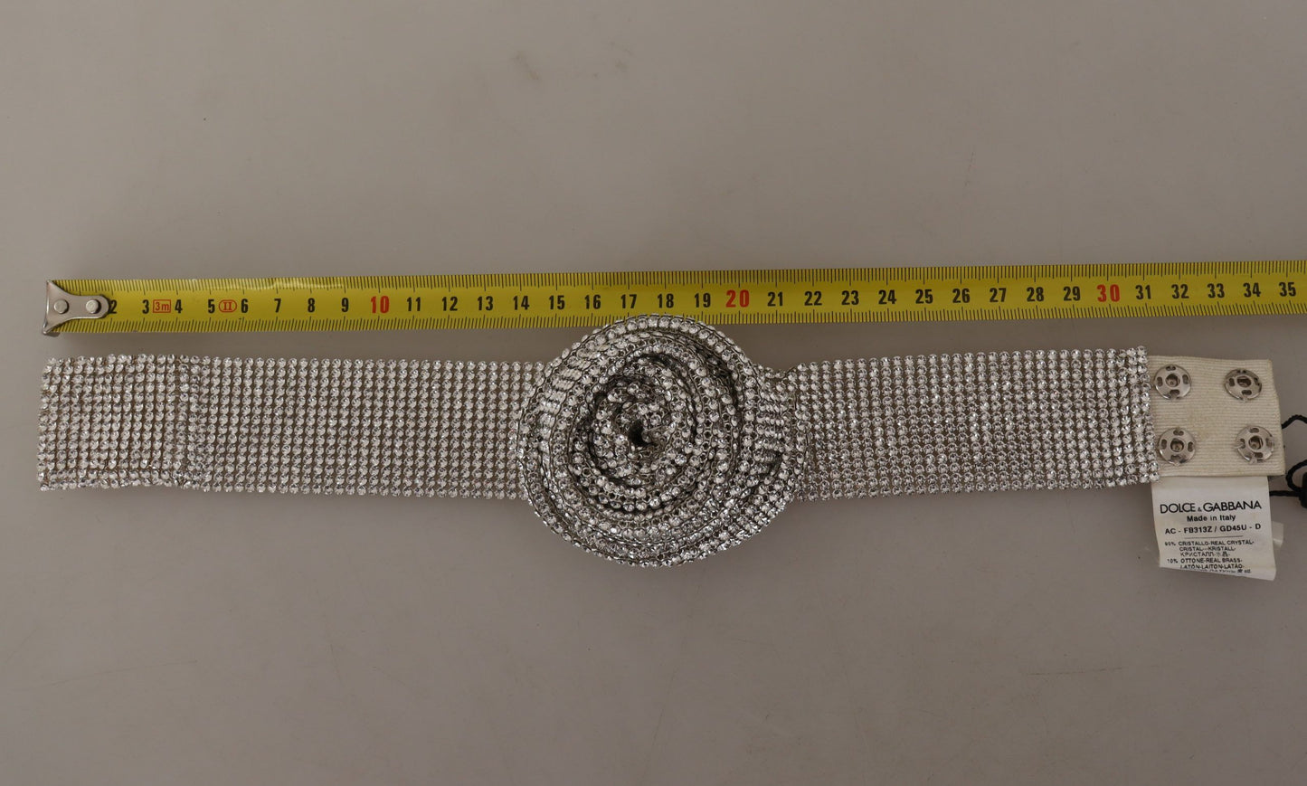 Indulge in the essence of elegance with this stunning choker necklace, a statement piece that radiates the luxurious appeal of its creators, Dolce & Gabbana. Impeccably crafted, this necklace boasts an intricate design, showcasing clear, shining crystals set against a sophisticated silver backdrop. The velcro closure ensures a seamless fit, adding a touch of practicality to its splendid design.