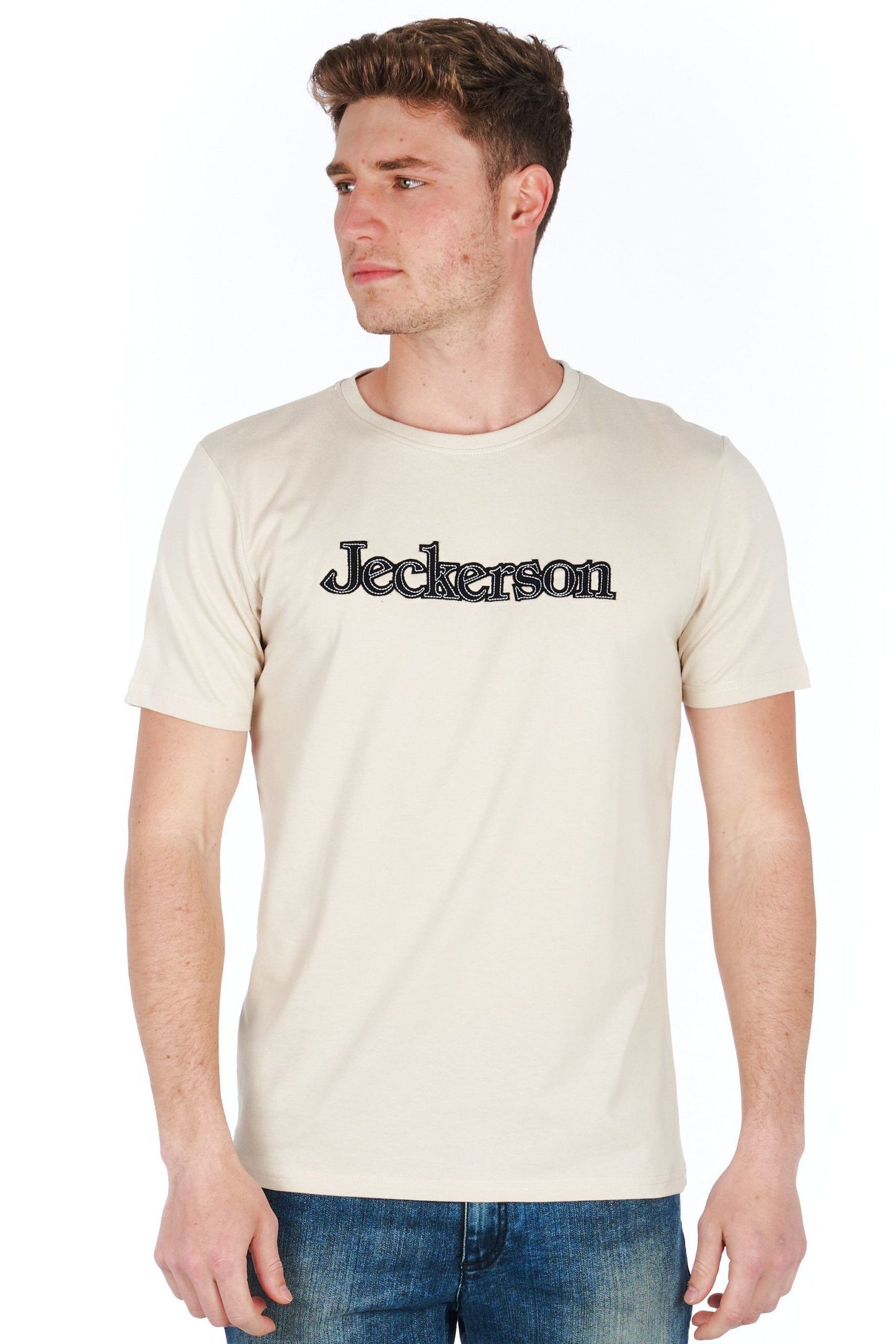 Refresh your wardrobe with this sleek silver slim fit T-shirt by Jeckerson, perfect for adding a touch of elegance to any casual ensemble. Featuring a distinguished logo appliqué and a classic round neck paired with short sleeves, this jersey is a testament to effortless style and comfort.