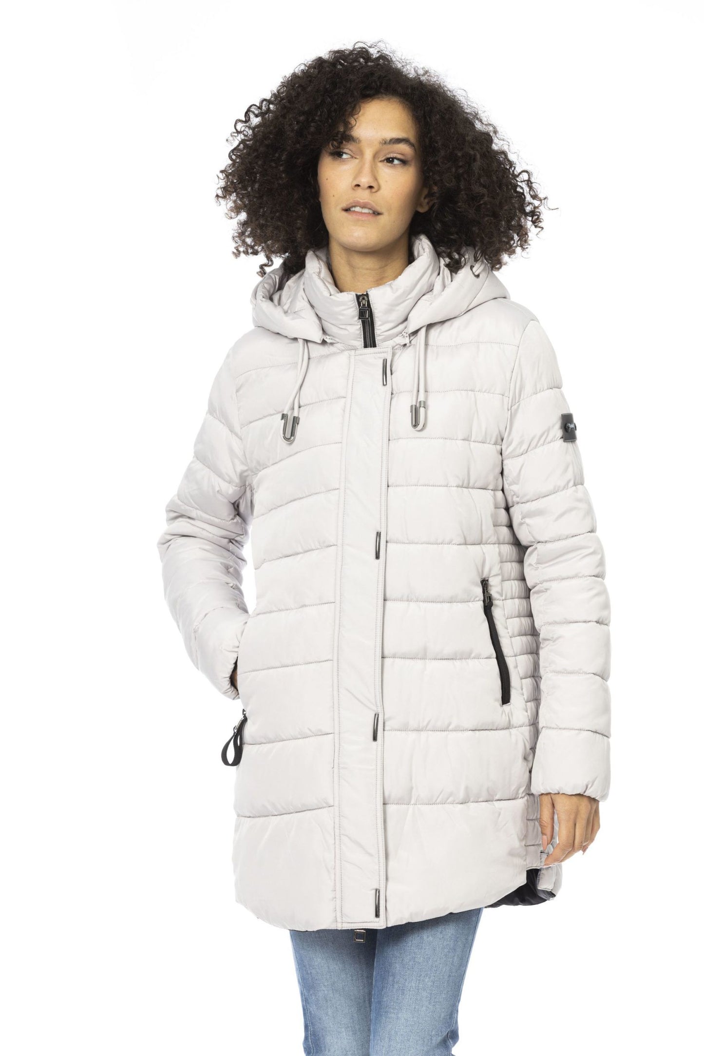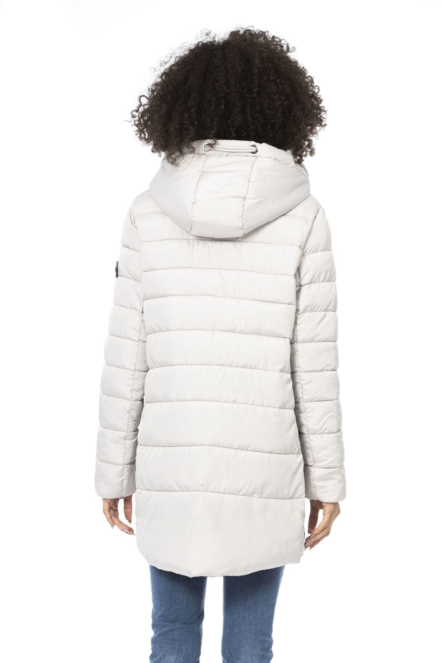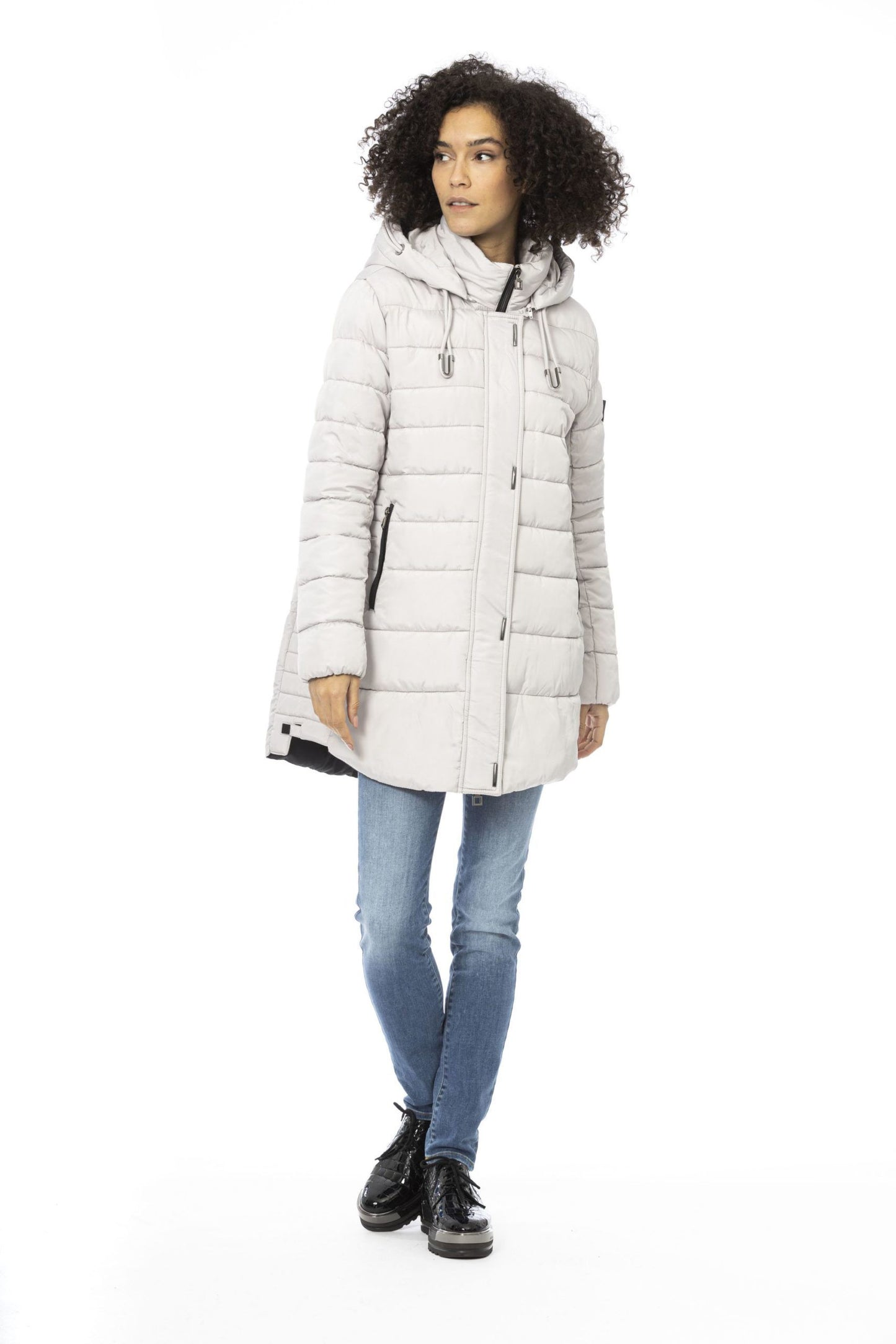 Embrace the elegance and warmth of the Baldinini Trend’s long down jacket, a luxurious addition to your winter wardrobe. It features external welt pockets for convenience and an adjustable hood for customization and comfort. The jacket is adorned with a distinct metal Baldinini monogram, adding a touch of class. Its front closure is equipped with a zip and a personalized hood puller, ensuring both style and practicality.