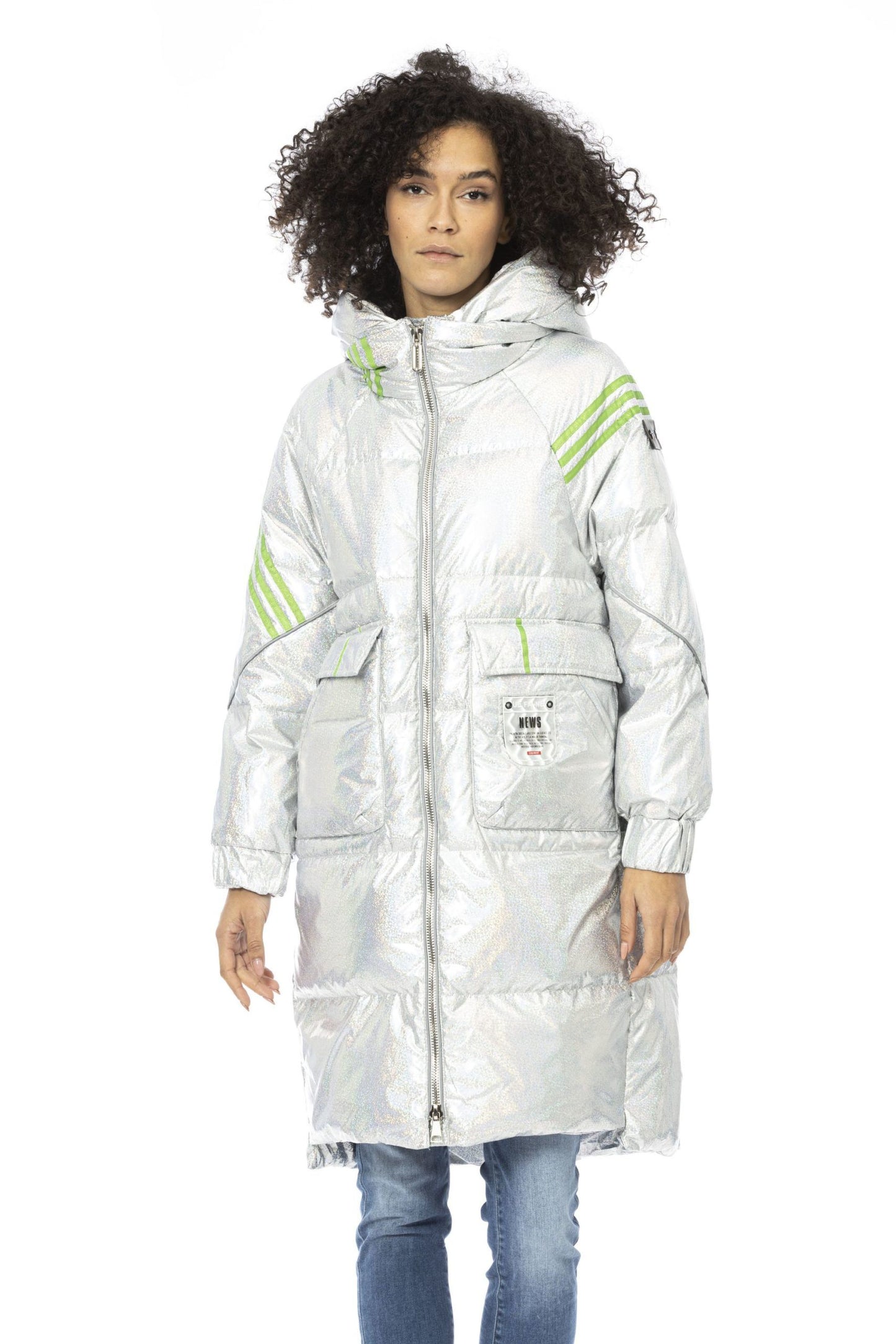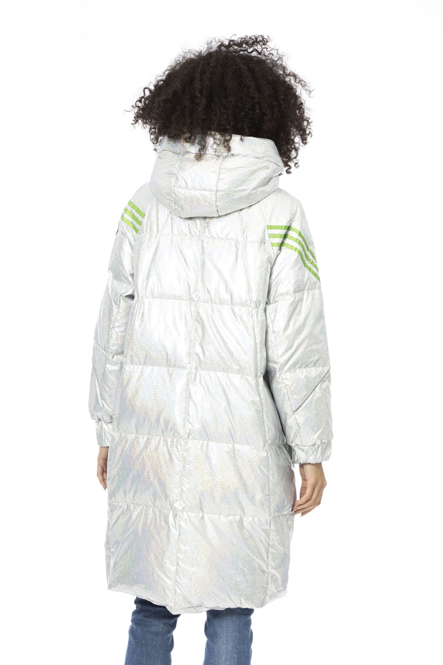 Silver Glam Long Down Jacket with Hood
