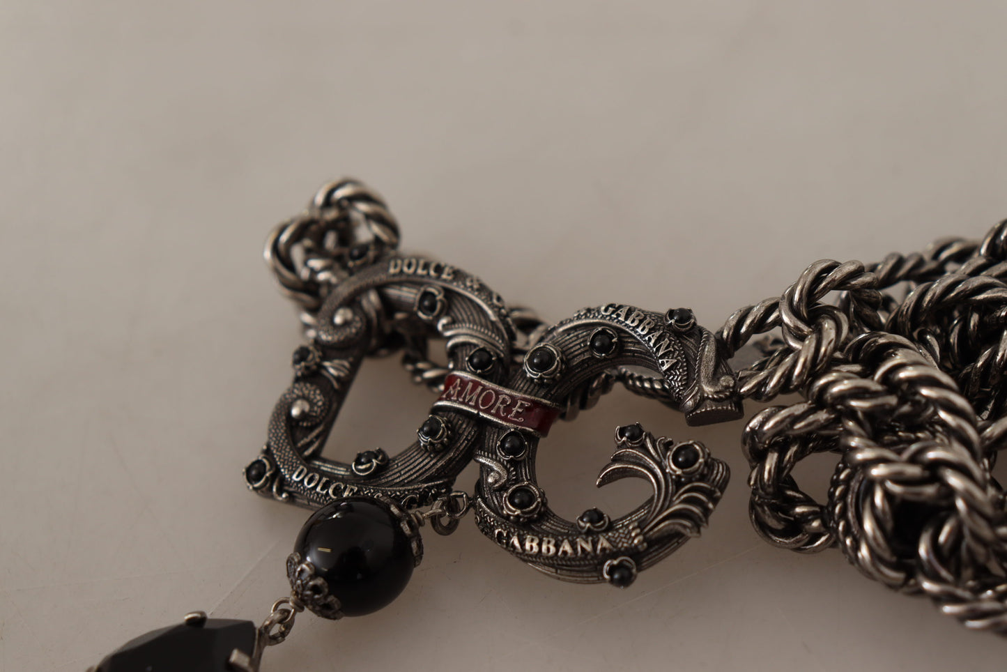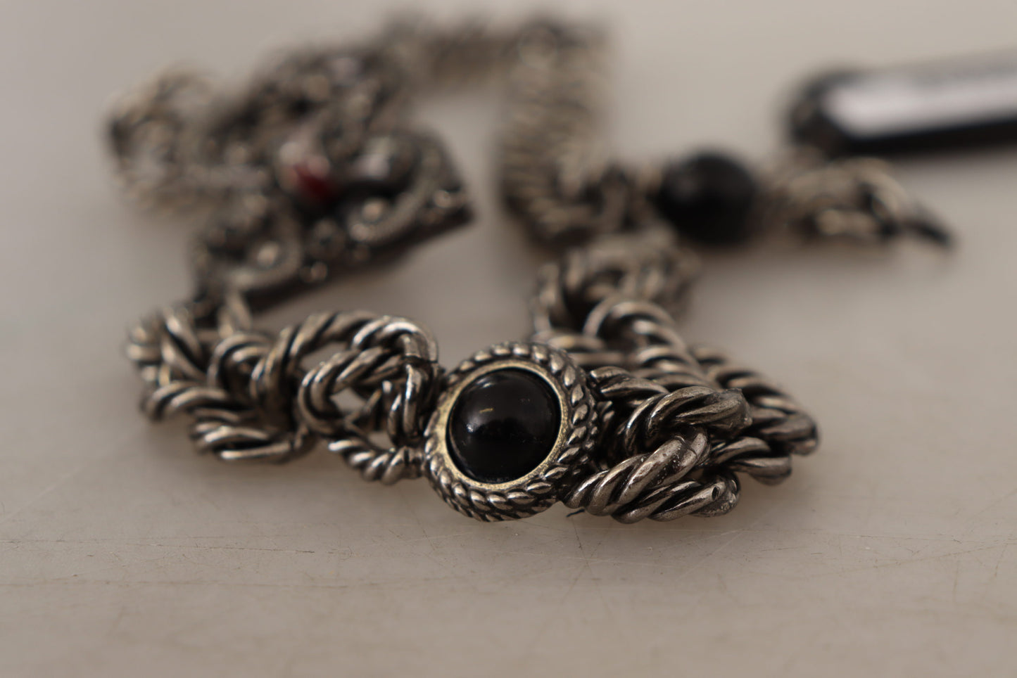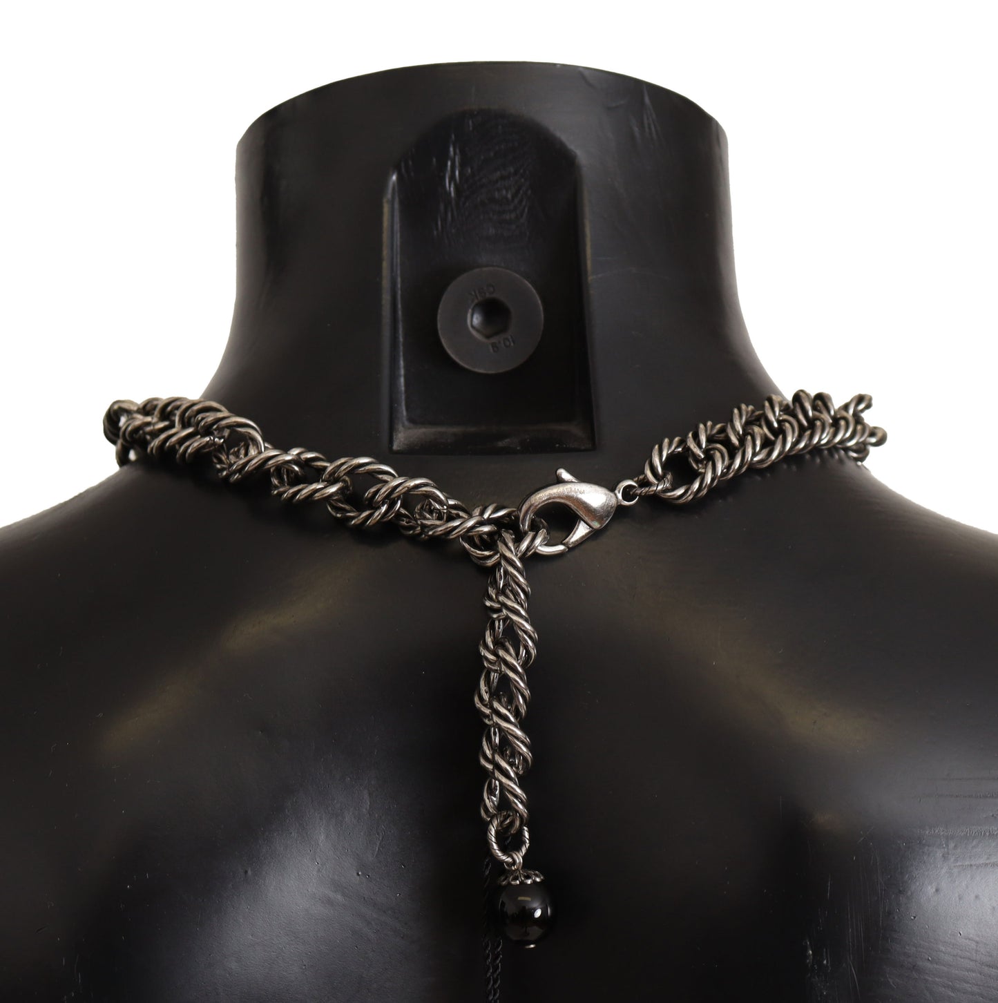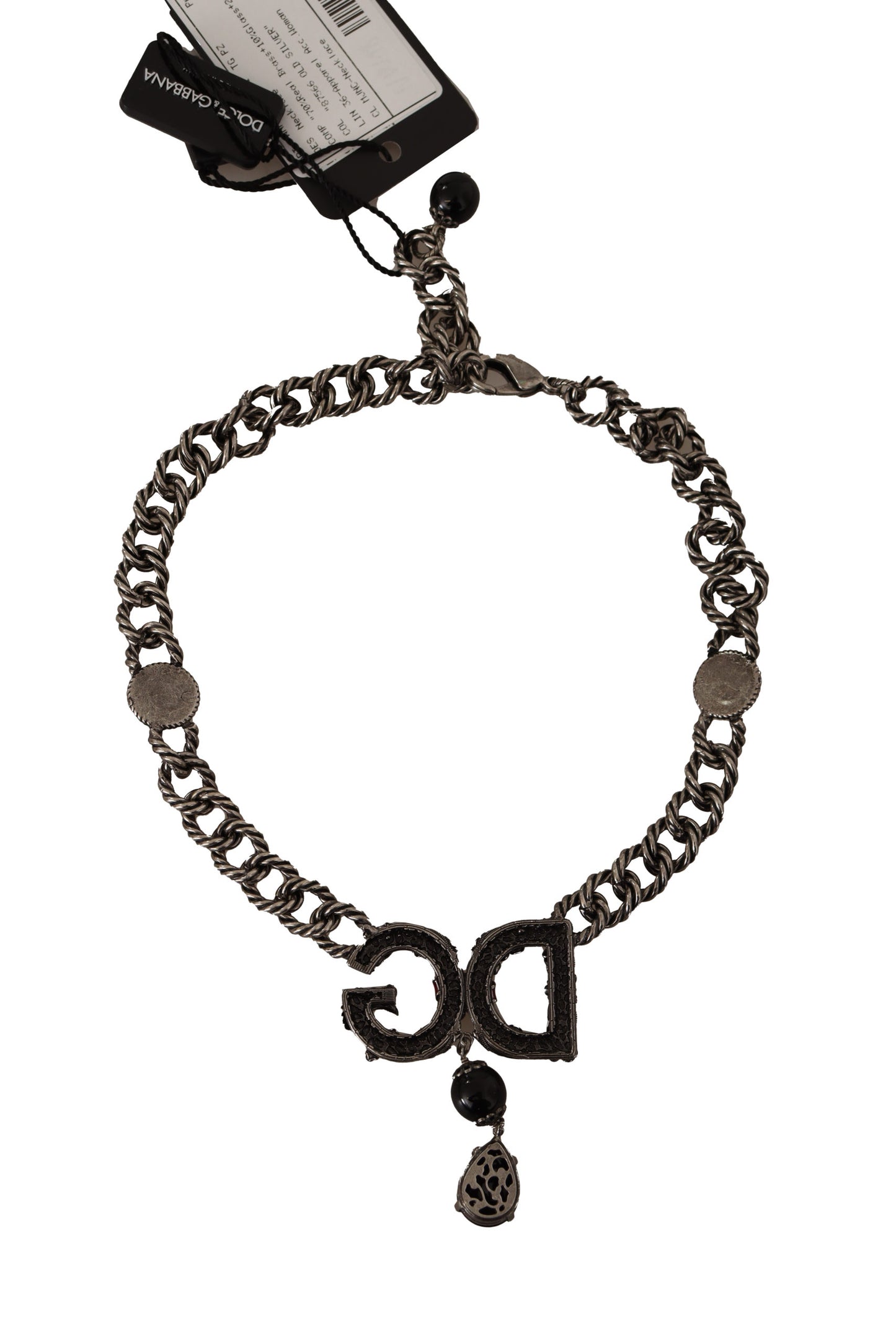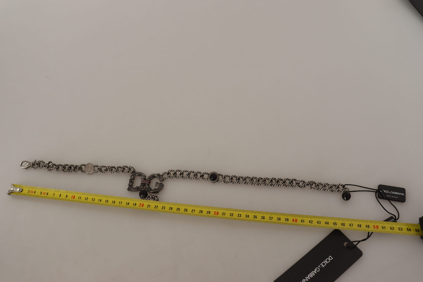 Exude sophistication with this exquisite Dolce & Gabbana charm necklace. A sparkling demonstration of Italian craftsmanship, this elegant piece boasts a glistening DG logo pendant that dangles delicately from a chic silver-tone brass chain. Secured with a classic lobster clasp, this accessory is a testament to the luxury that embodies Dolce & Gabbana.
