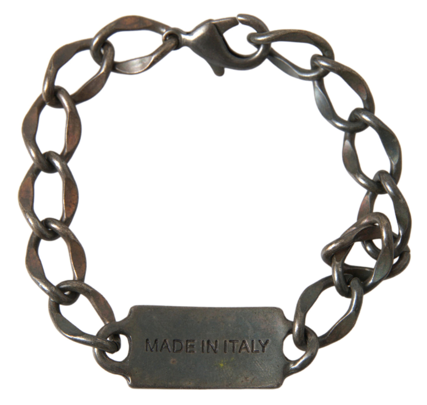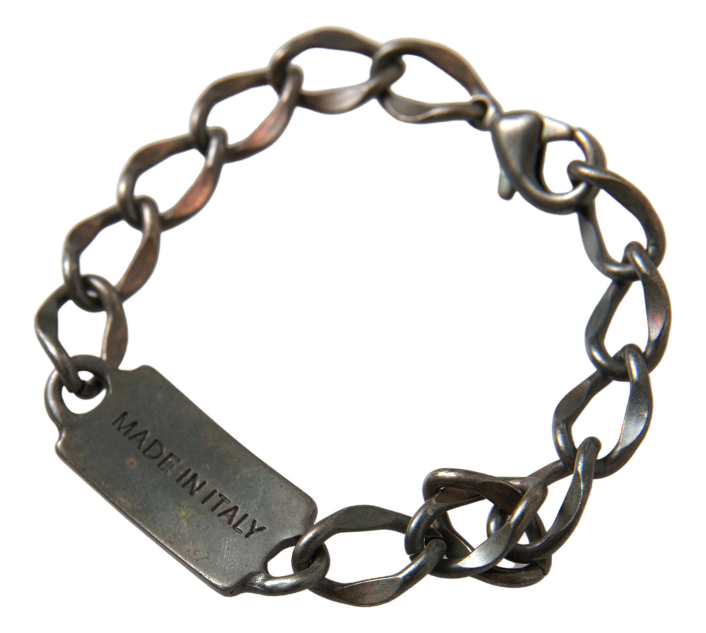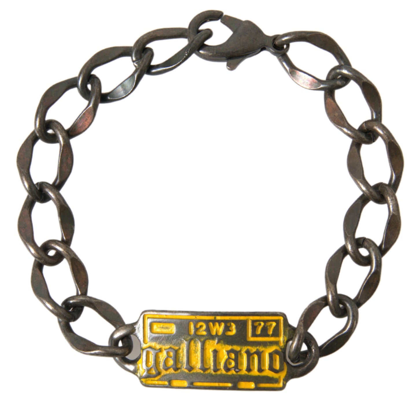 Exude elegance with this striking John Galliano antique silver chain link bracelet. Designed to be a show-stopping addition to any ensemble, this bracelet is a testament to luxury and sophisticated style. Crafted from high-quality brass, the piece features a secure lobster closure to ensure a perfect fit, while the stylish antique silver finish adds a vintage touch to its modern silhouette. Perfect for confident women who appreciate a blend of contemporary design and classic appeal.