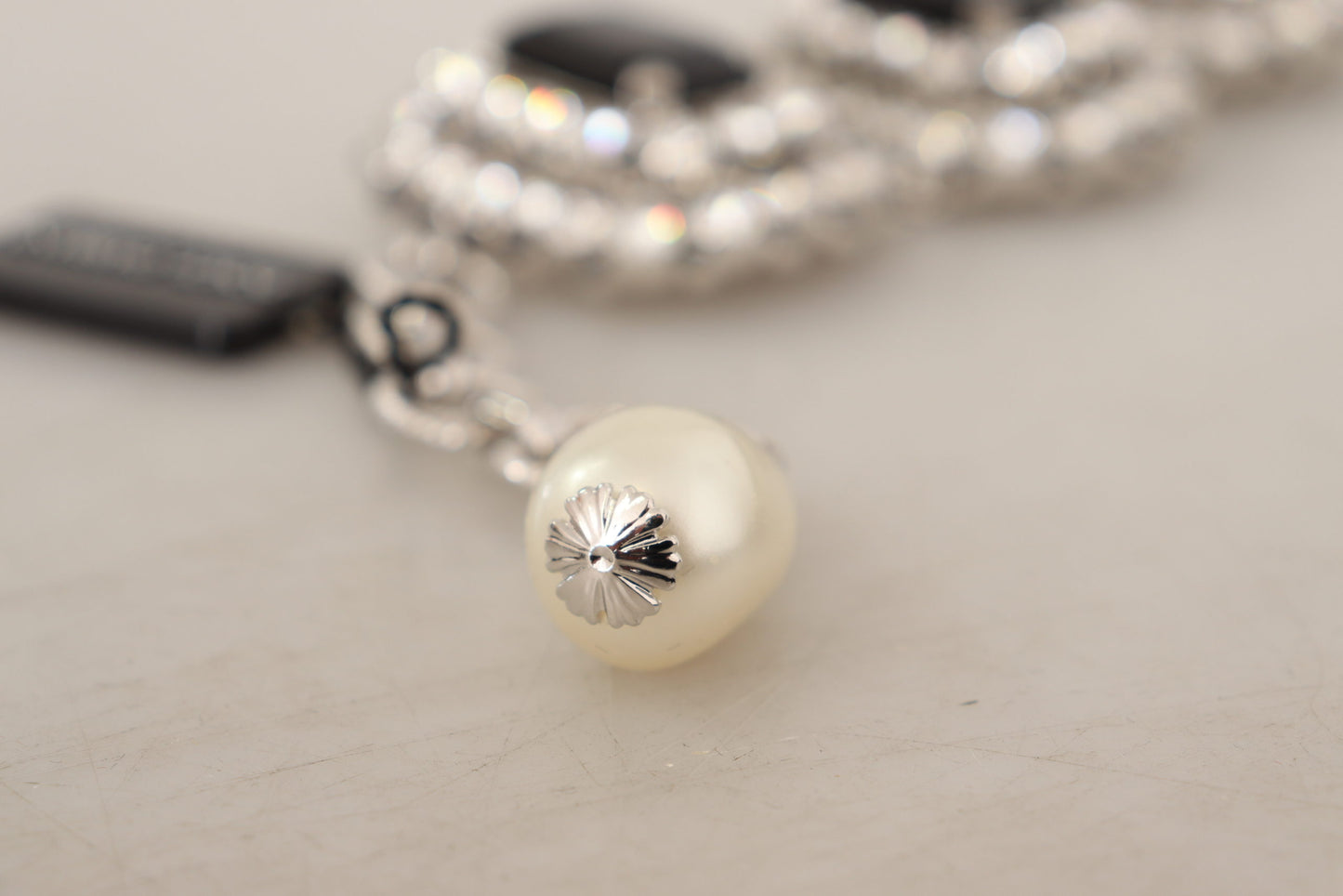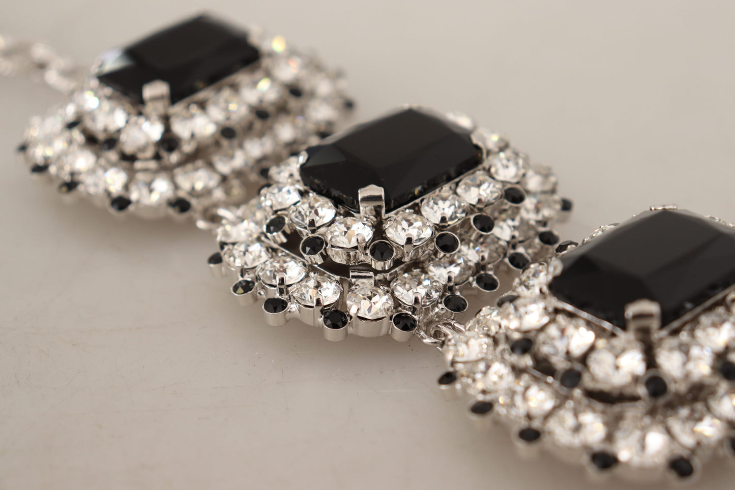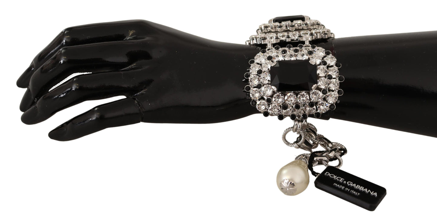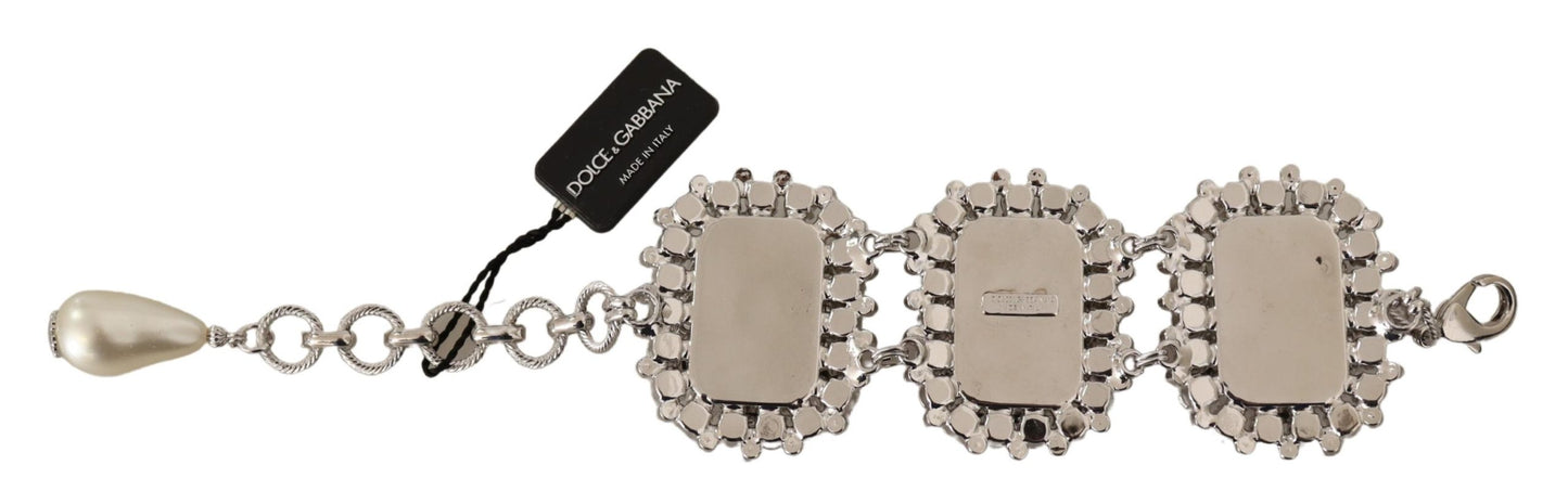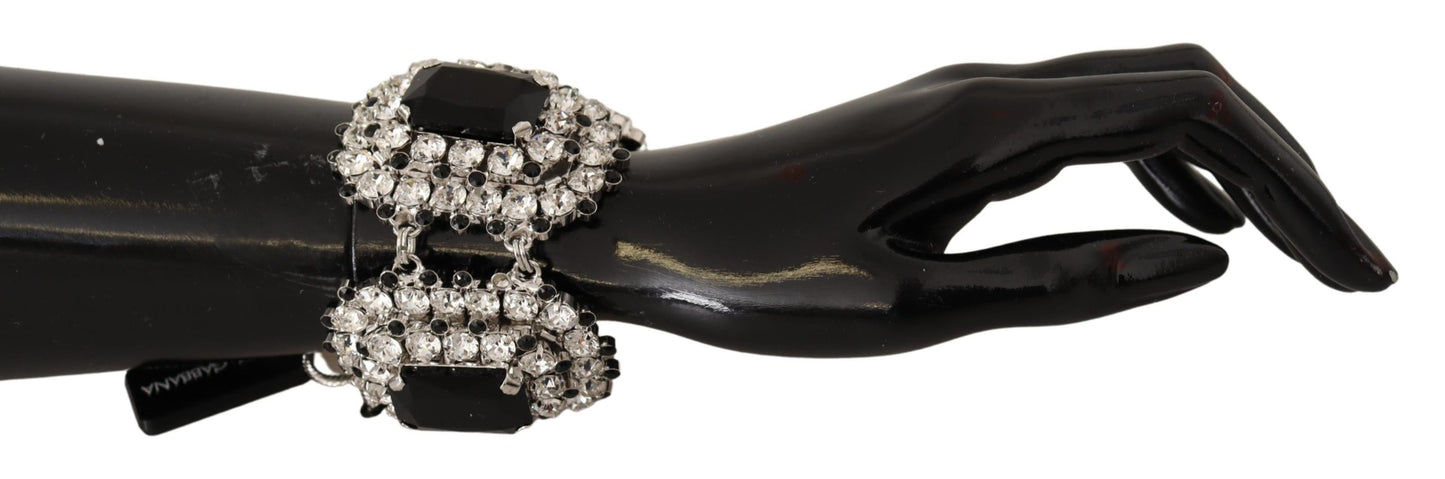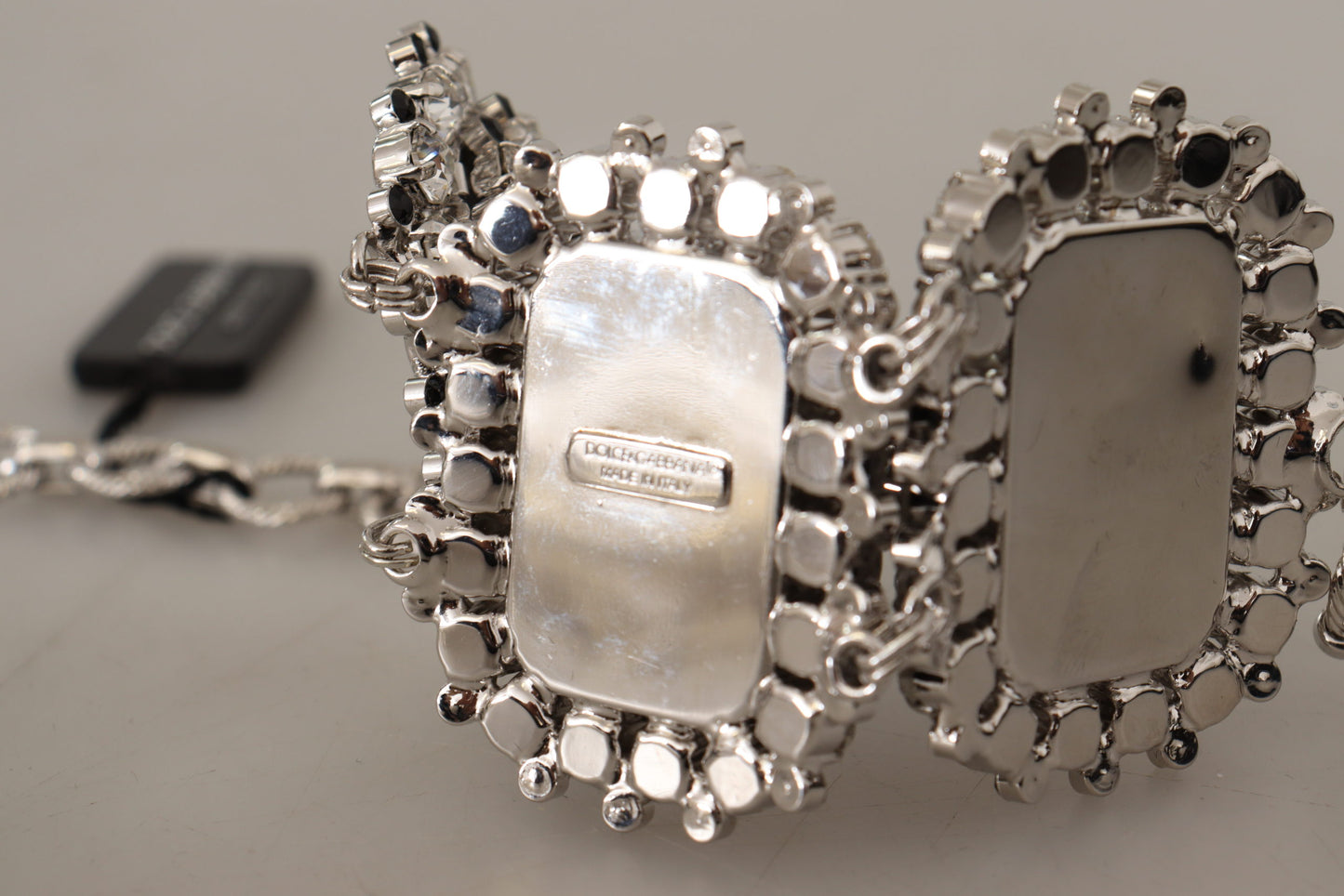 Indulge in the opulence of Dolce & Gabbana‘s exquisite bracelet, beautifully adorned with sparkling crystal decorations. This statement piece exemplifies luxury, crafted from lustrous silver-tone brass that promises enduring shine. Its adjustable chain bracelet design ensures a perfect fit as it dangles gracefully on the wrist, making it an ideal accessory for any woman seeking an elegant touch to her ensemble.