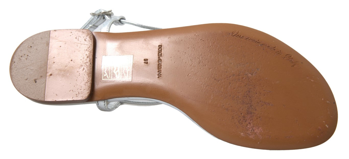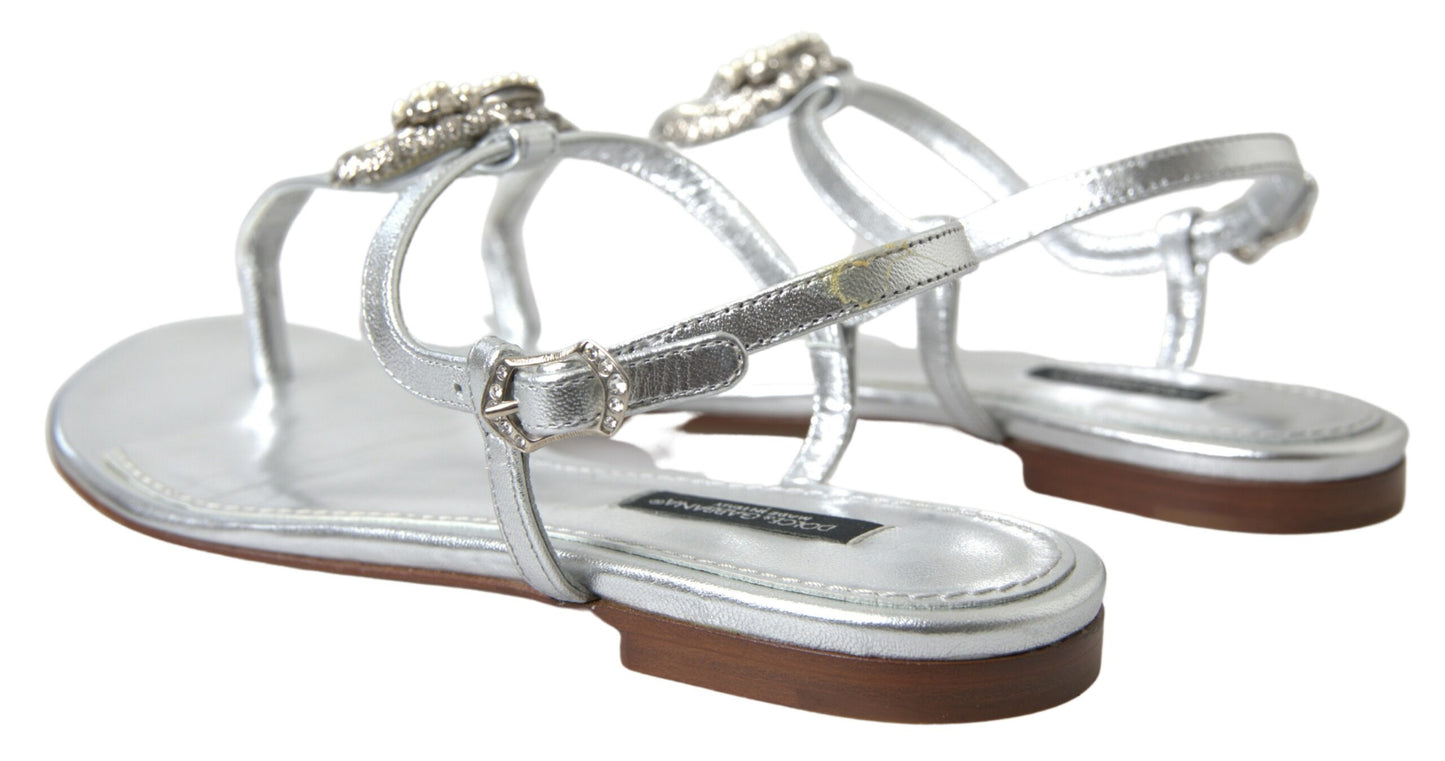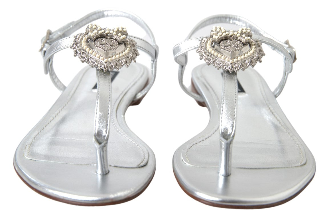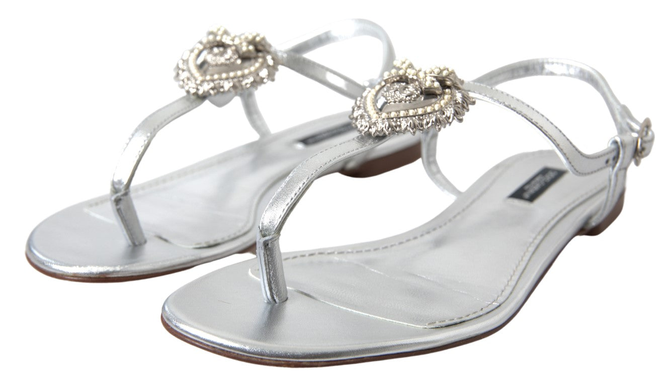 Step out in style with these stunning, brand new sandals from Dolce & Gabbana. Designed to add a touch of sophistication to any outfit, these silver-tone flats showcase charming heart details that capture the essence of luxury footwear. Crafted from premium leather, they boast a comfortable strap design ensuring both elegance and practicality for your walk. Perfect for any fashion-forward wardrobe, these sandals are a true testament to Italian craftsmanship.