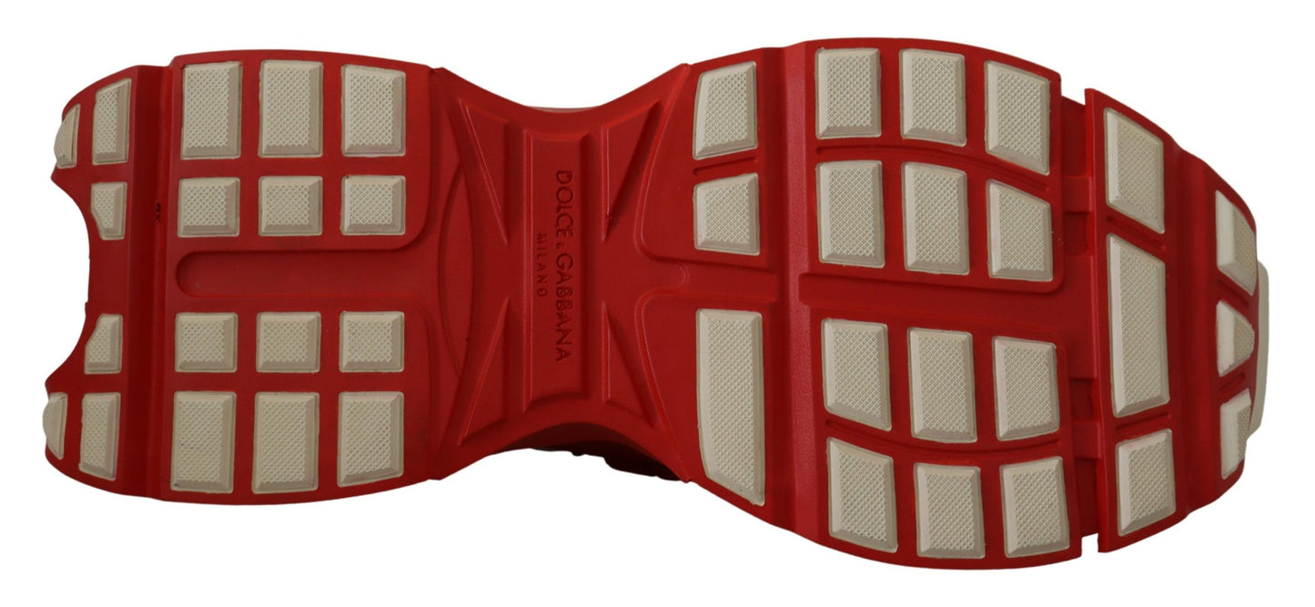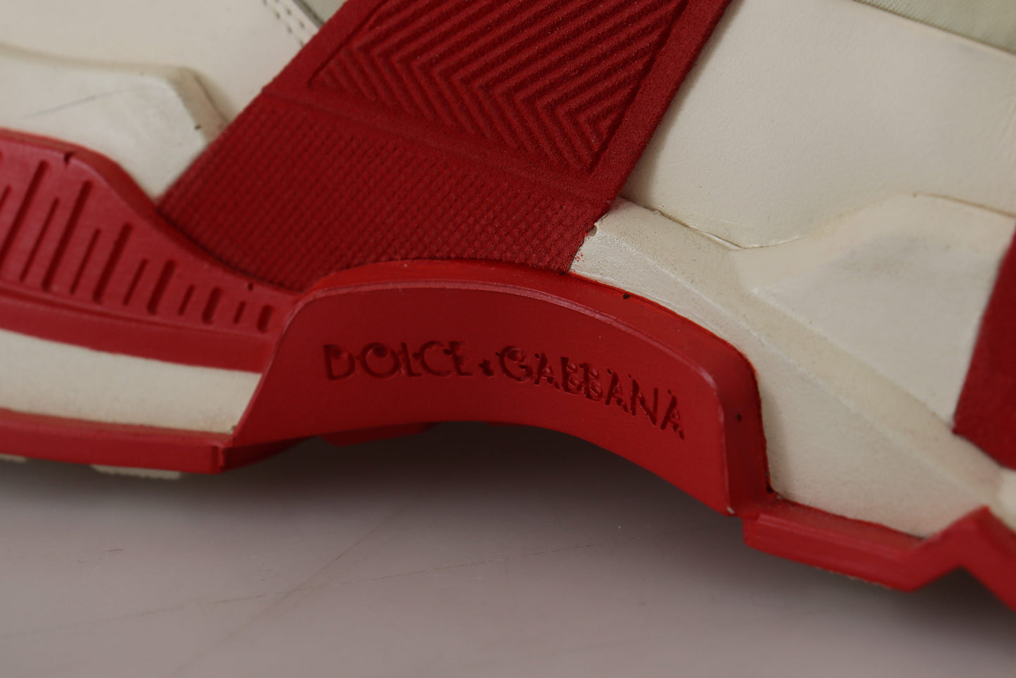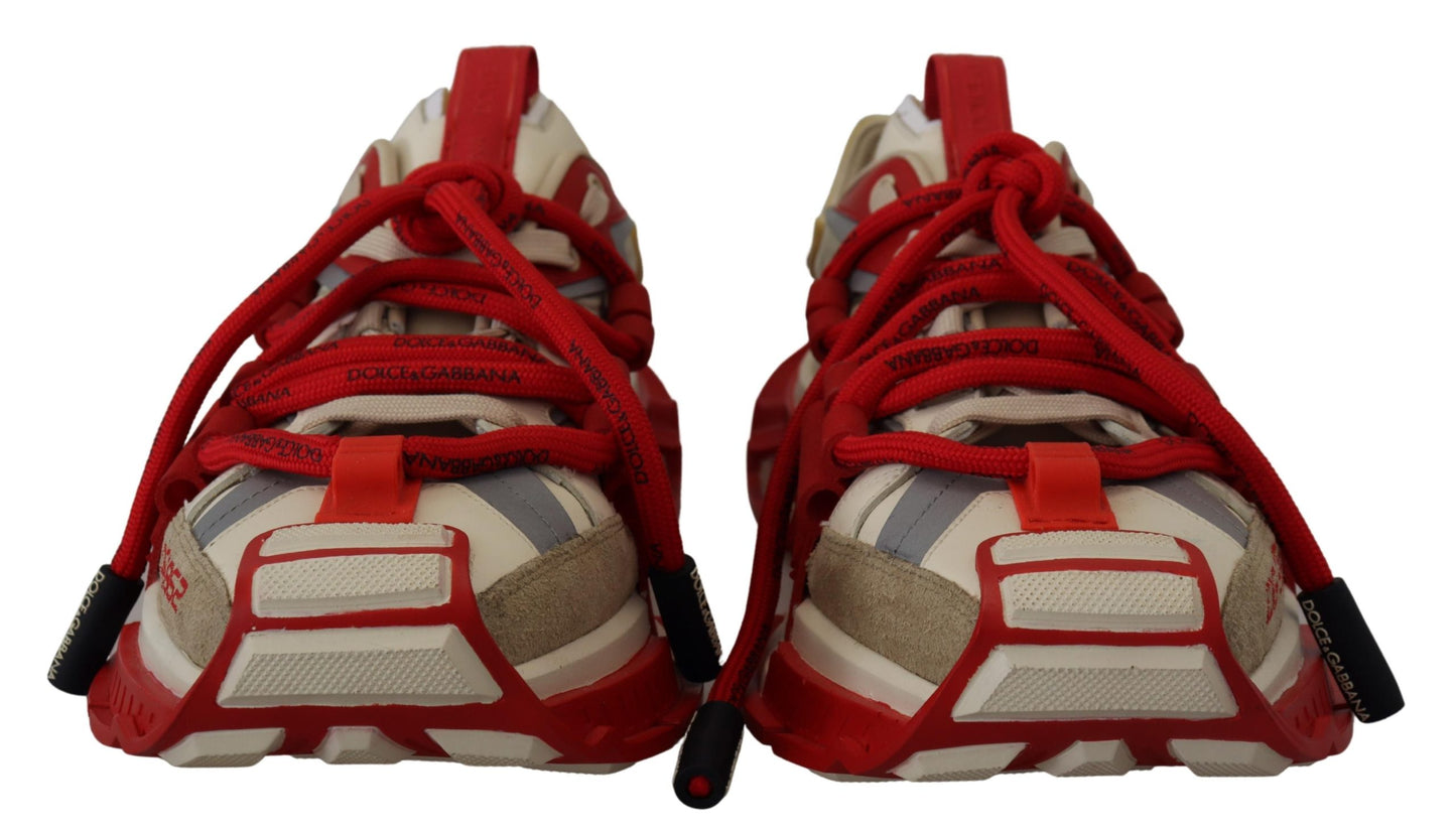 Step out in style with these exquisite sneakers from Dolce & Gabbana. These brand new kicks are not only a testament to fashion-forward design but also offer premium comfort and craftsmanship. With a vibrant mix of red and beige matched with the high-quality leather and nylon materials, they’re perfect for adding a splash of luxury to any outfit. Characterized by the iconic logo details and a durable rubber sole, these sneakers are crafted in Italy, ensuring an unmatched level of quality.