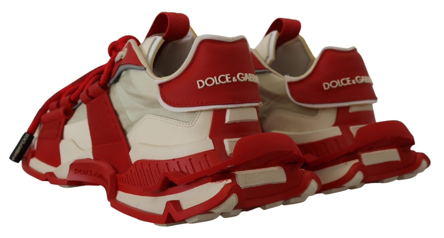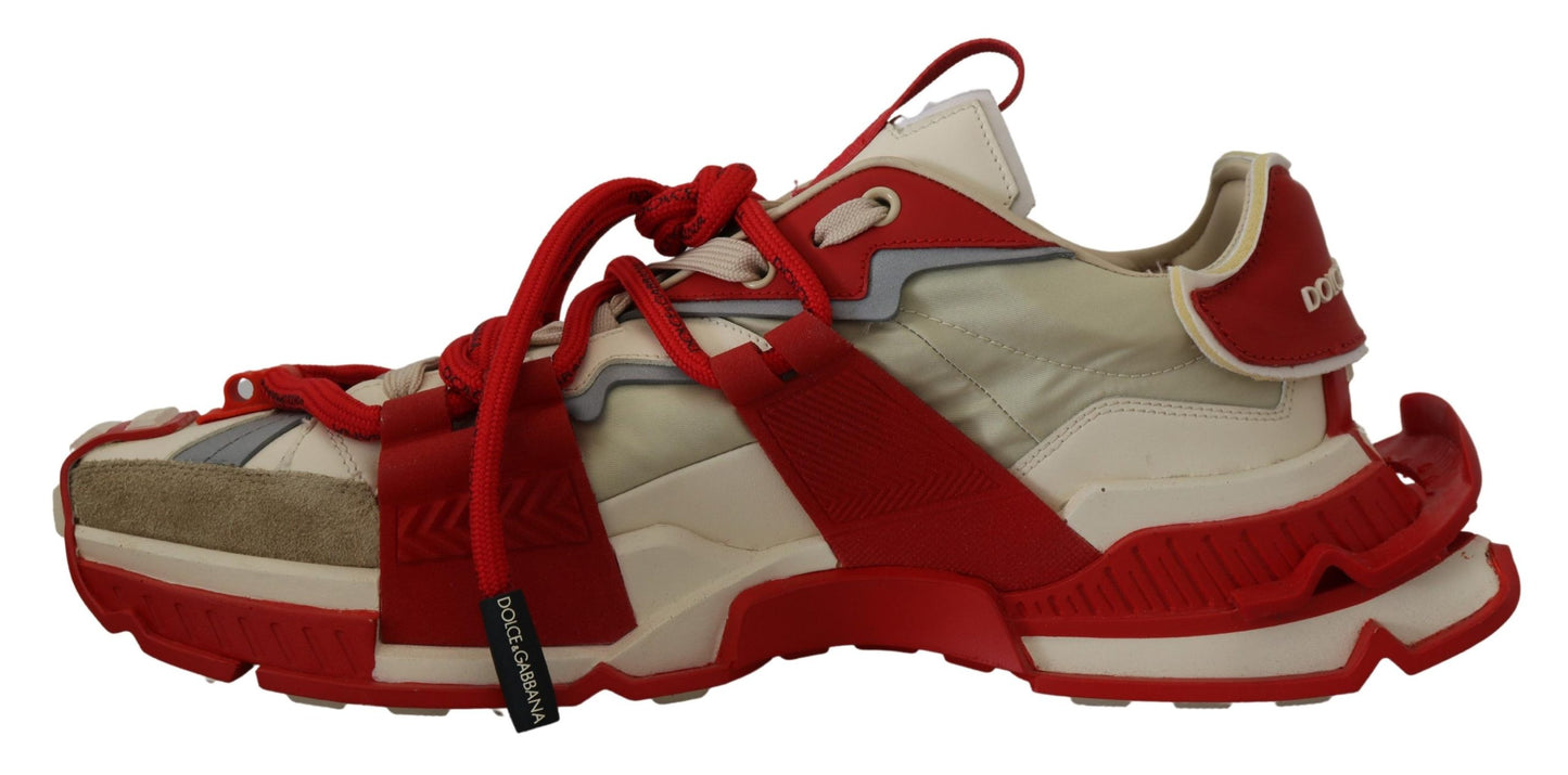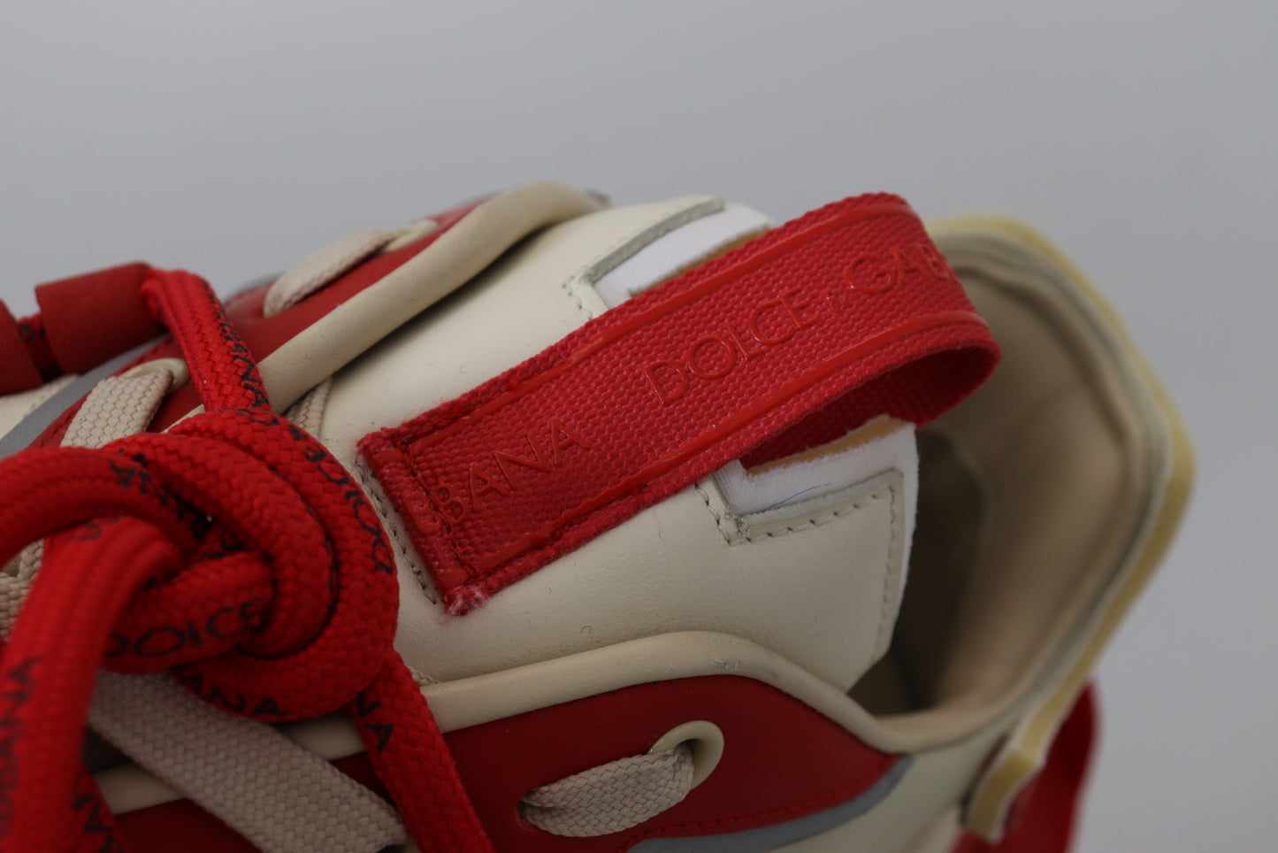 Step out in style with these exquisite sneakers from Dolce & Gabbana. These brand new kicks are not only a testament to fashion-forward design but also offer premium comfort and craftsmanship. With a vibrant mix of red and beige matched with the high-quality leather and nylon materials, they’re perfect for adding a splash of luxury to any outfit. Characterized by the iconic logo details and a durable rubber sole, these sneakers are crafted in Italy, ensuring an unmatched level of quality.