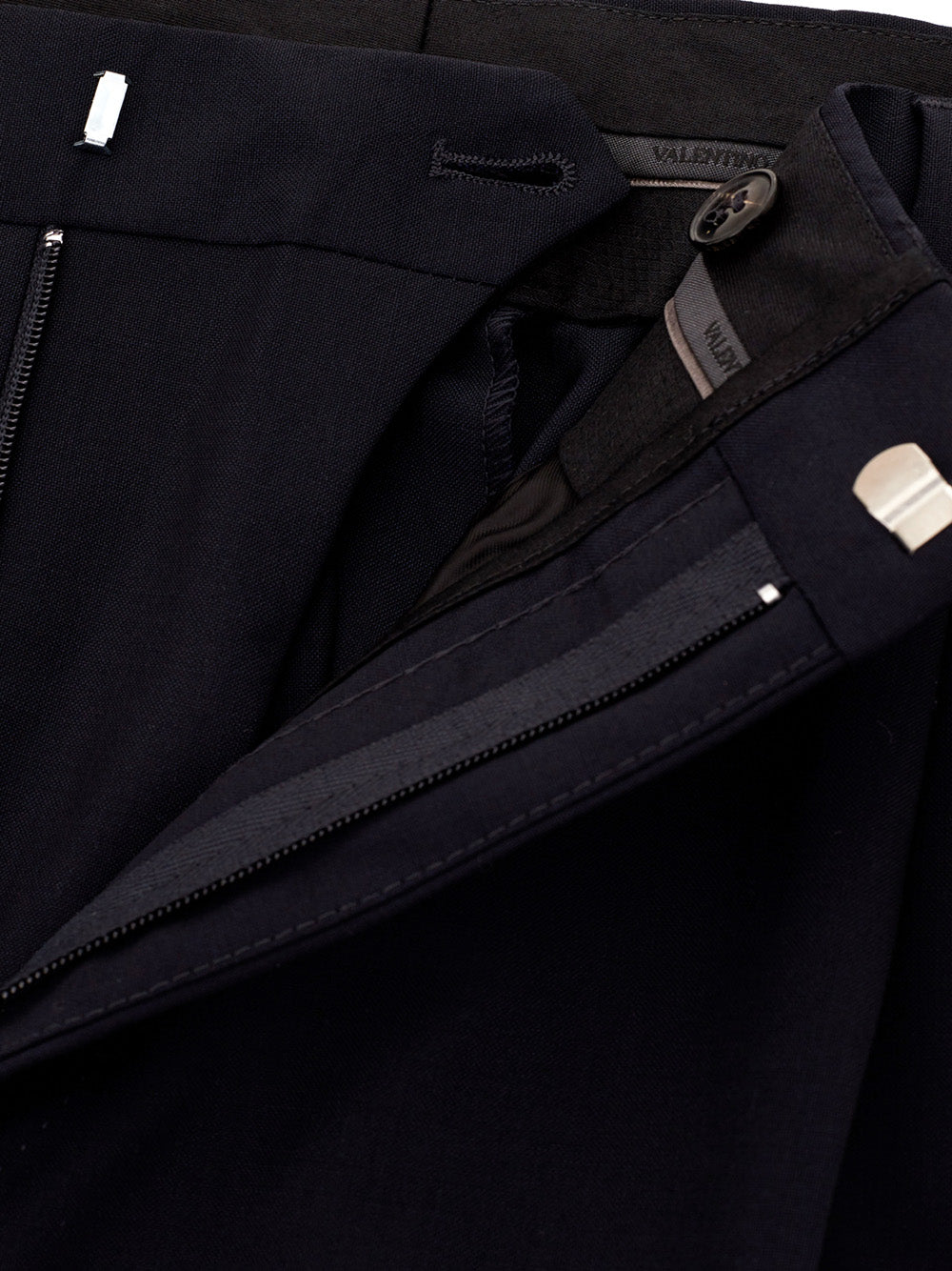 Discover the epitome of Italian craftsmanship with these Valentino trousers, a testament to understated luxury that seamlessly connects classic style and modern elegance. Rendered in a rich blue hue, these trousers are crisply tailored to enhance your silhouette. Made from a premium blend of wool and mohair, the trousers feature a slightly glossy texture, offering a luxurious feel and sartorial polish. Perfect for business meetings or special occasions, these trousers come with a secure front closure and are meticulously designed with four pockets for practicality and style.