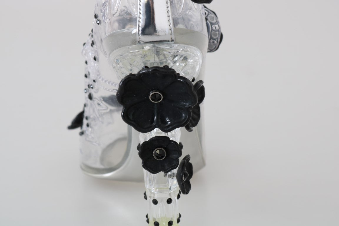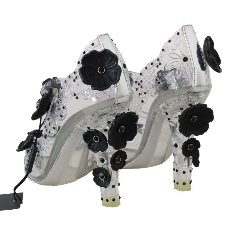 Step into a modern fairytale with these stunning Dolce & Gabbana Cinderella crystal pumps. Exquisitely crafted with a blend of PVC and leather, these pumps are a testament to luxury and style. The transparent design is embellished with dazzling clear crystals, offering an enchanting sparkle with every step. Perfect for special occasions, these shoes are a true representation of high-fashion artistry made in Italy. A rubber sole with logo details completes the chic and sophisticated look.