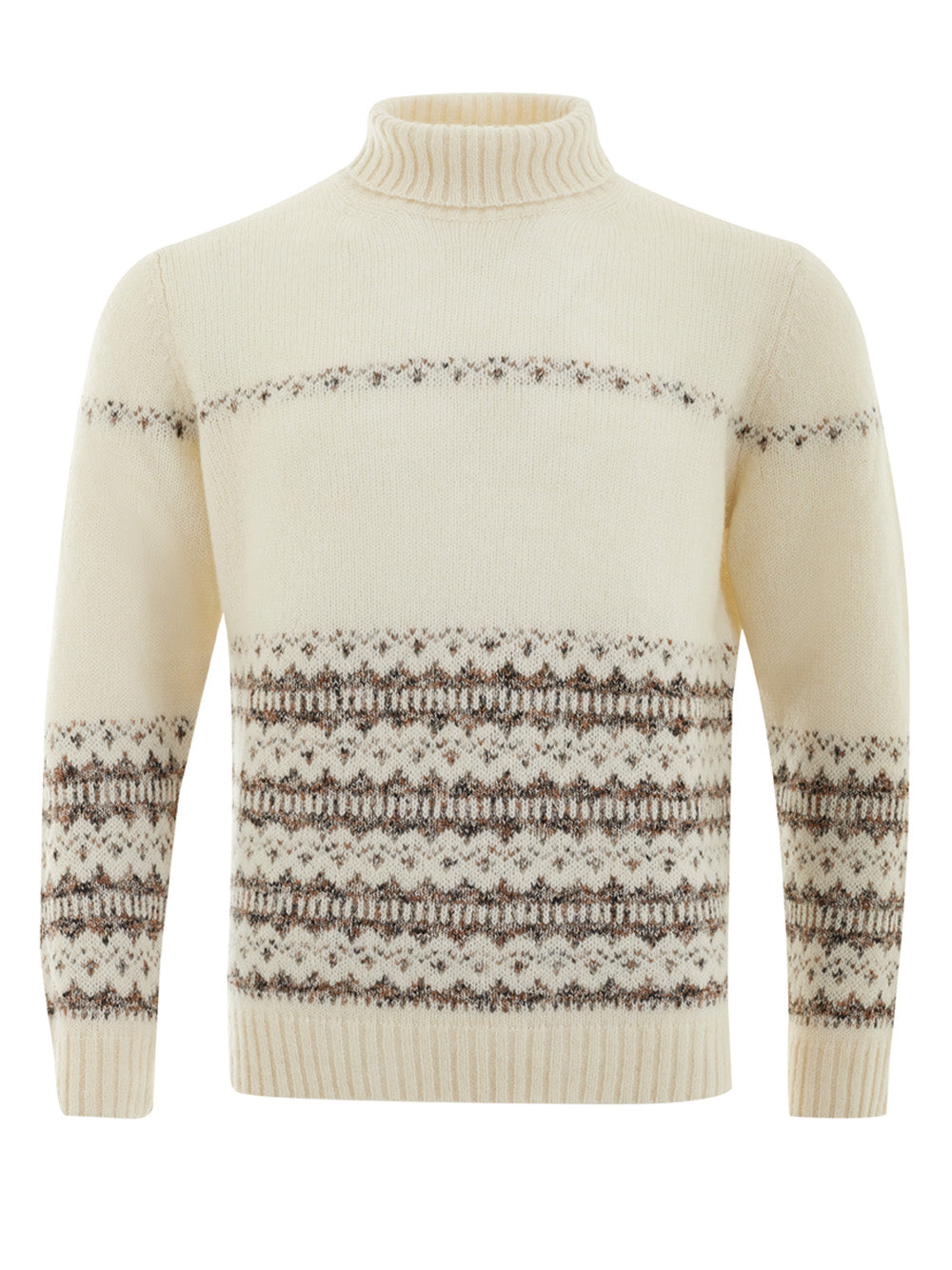 Indulge in the epitome of luxury and comfort with our stunning new arrival – a pure expression of elegance and sophistication. This 100% Authentic Ferrante turtleneck Jumper is crafted from a sumptuous Alpaca wool blend, designed to envelope you in warmth and softness. The pristine white hue is accentuated by a contrasting print and refined cuffs, offering a regular fit that is both stylish and comfortable. Made with utmost care in Italy, it stands as a testament to opulent craftsmanship.
