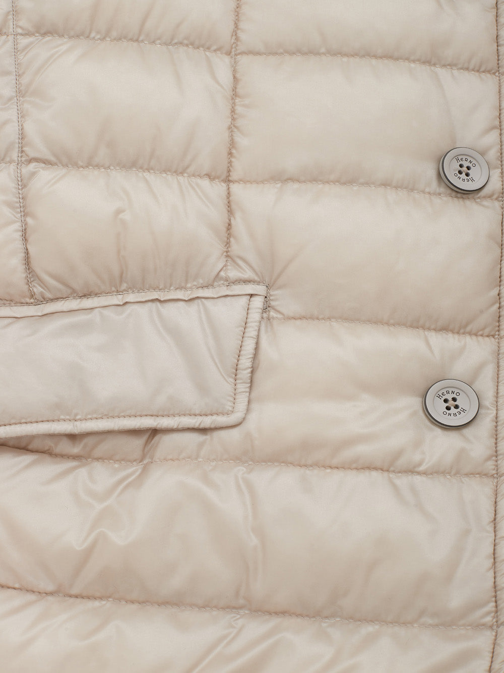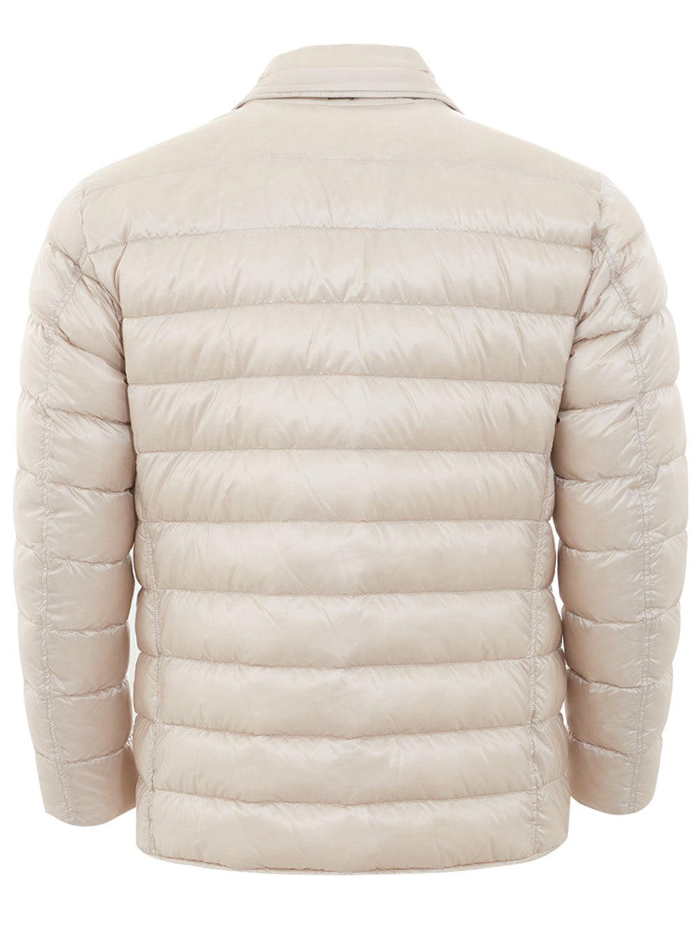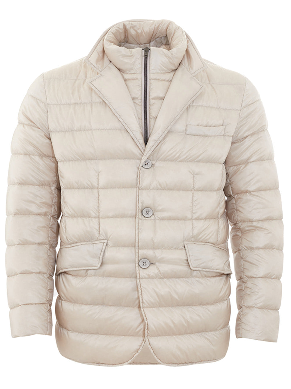 Step into luxury with a statement piece that exudes elegance and comfort. This Ivory ultralight quilted jacket from Herno is a stunning addition to any wardrobe. Its regular fitting silhouette pairs effortlessly with a cosmopolitan lifestyle. The jacket boasts a sophisticated front buttons closure, two cozy front pockets, and an additional mini pocket for those small essentials. Notably, it includes an inner quilted removable gilet, adding a layer of versatility and warmth. Crafted in Italy, the impeccable quality is palpable in every stitch.