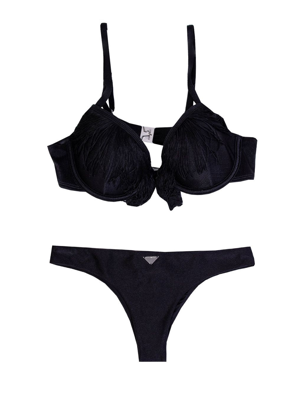 Elegant Fringed Black Triangle Bikini