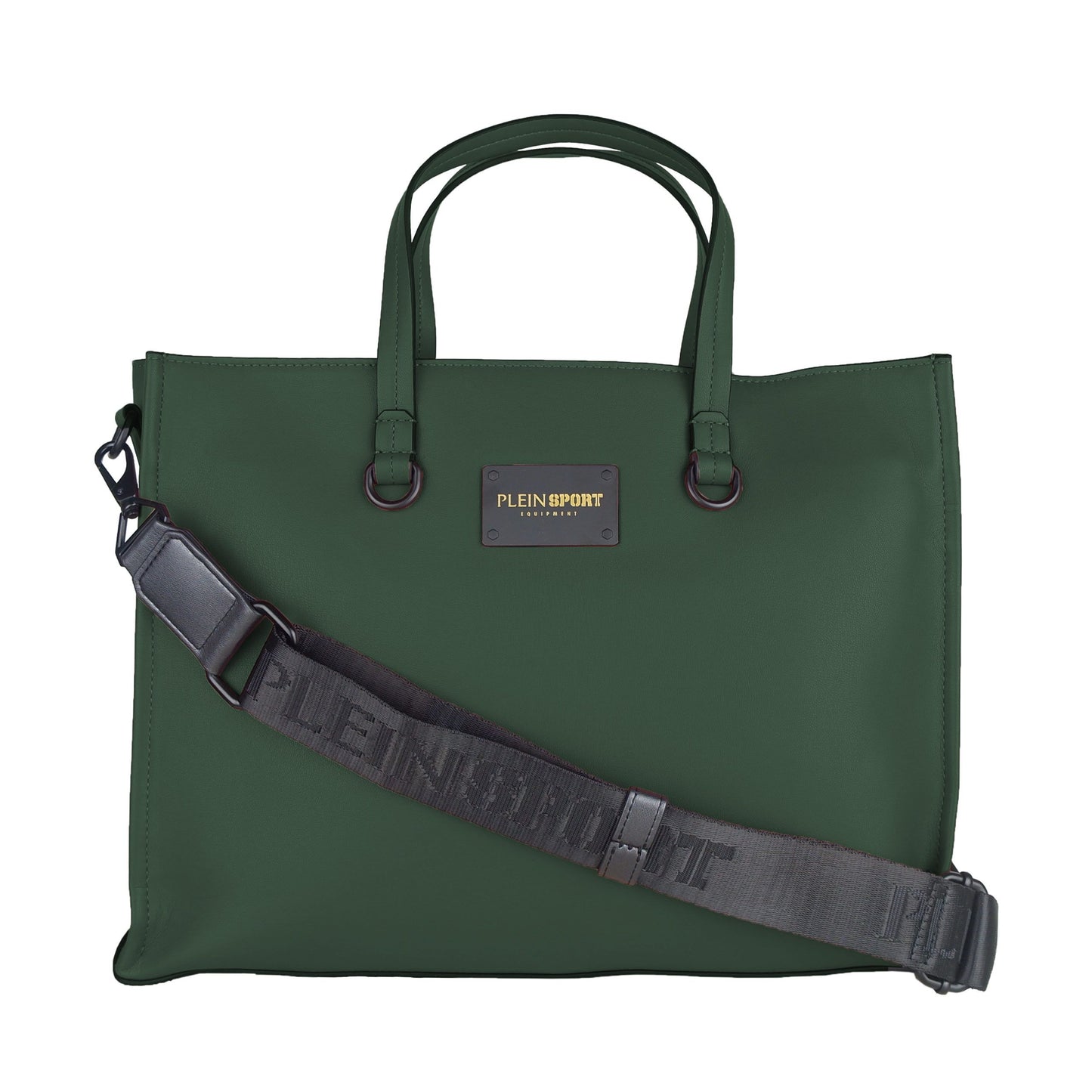 Step out in style with this sophisticated dark green eco-leather shopping bag, perfect for those who appreciate a blend of elegance and practicality. The bag flaunts an embossed logo print, adding a touch of luxury to your ensemble. Its spacious interior, secured with a zip closure, includes multiple internal pockets to keep your essentials organized. The finishing touch is an ornamental opaque plastic chain that adds a modern edge to the timeless design.
