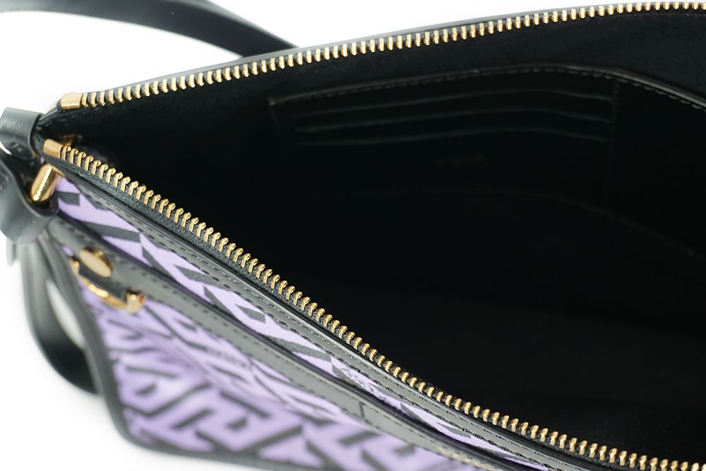 Making a statement with every outing, this Versace Signature Shoulder Bag is the epitome of luxury and refinement. With its striking violet and black hues, it is certain to turn heads and set trends. Crafted from the finest calf leather for a luxurious feel and enduring quality, this bag is both gorgeous and practical, featuring a secure zip closure and a well-organized interior with a pocket and three card holders for your essentials.