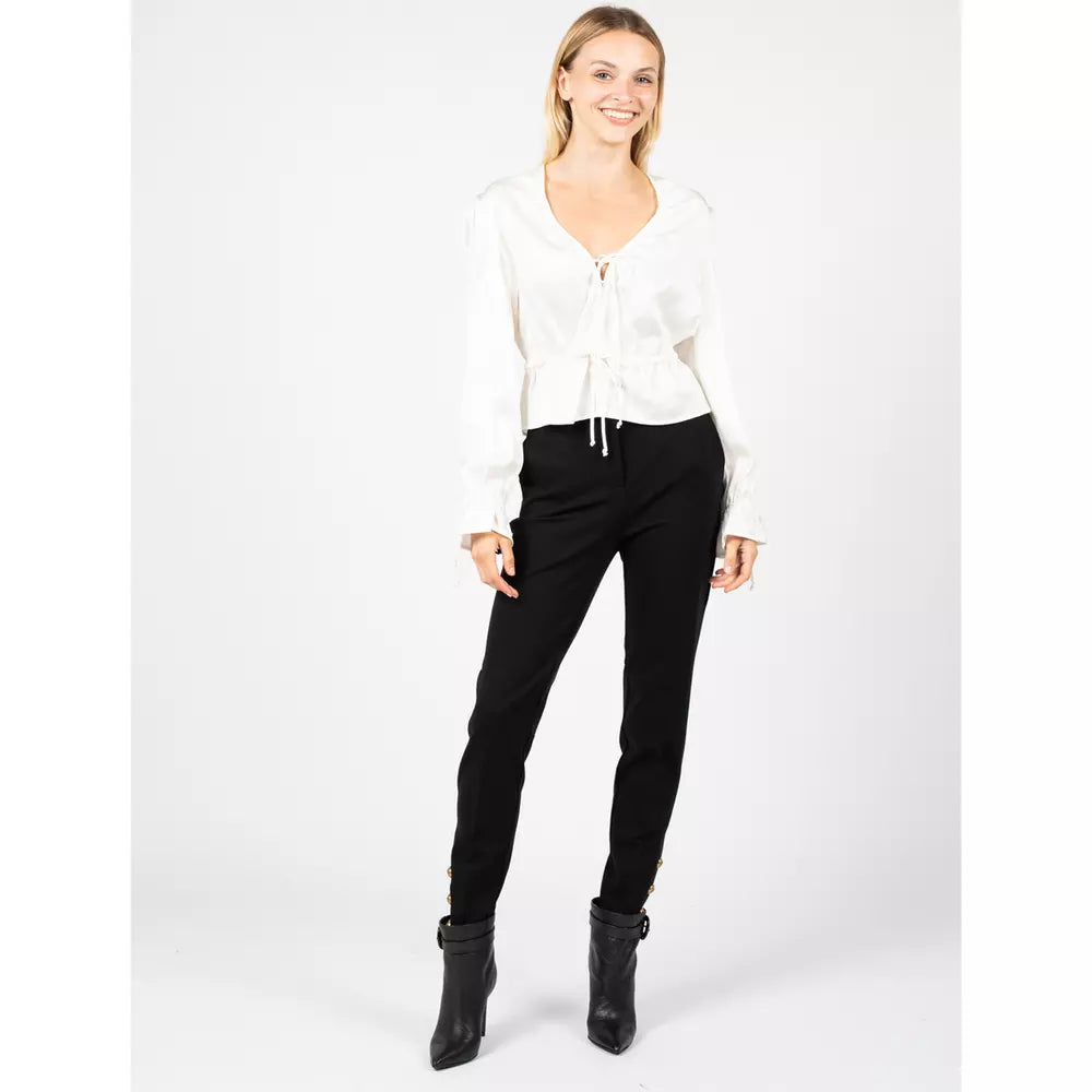 Elevate your wardrobe with this chic V-neck blouse, crafted from luxurious hammered satin. Perfect for transitioning from day to night, this top features an elastic hem and sleeve details, complete with charming tie cords for a custom fit. Boasting a pristine white shade, it’s a versatile must-have for any fashion enthusiast.