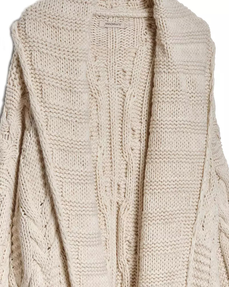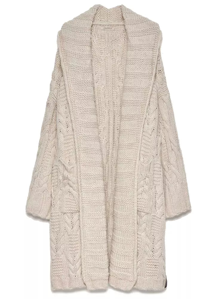 Exude elegance with this beautifully crafted long open knit dress, perfect for layering and adding a touch of sophistication to any outfit. Featuring a classic cable knit design and convenient front pockets, this dress combines style with practicality. Made in Italy, the quality of craftsmanship is evident in every stitch.