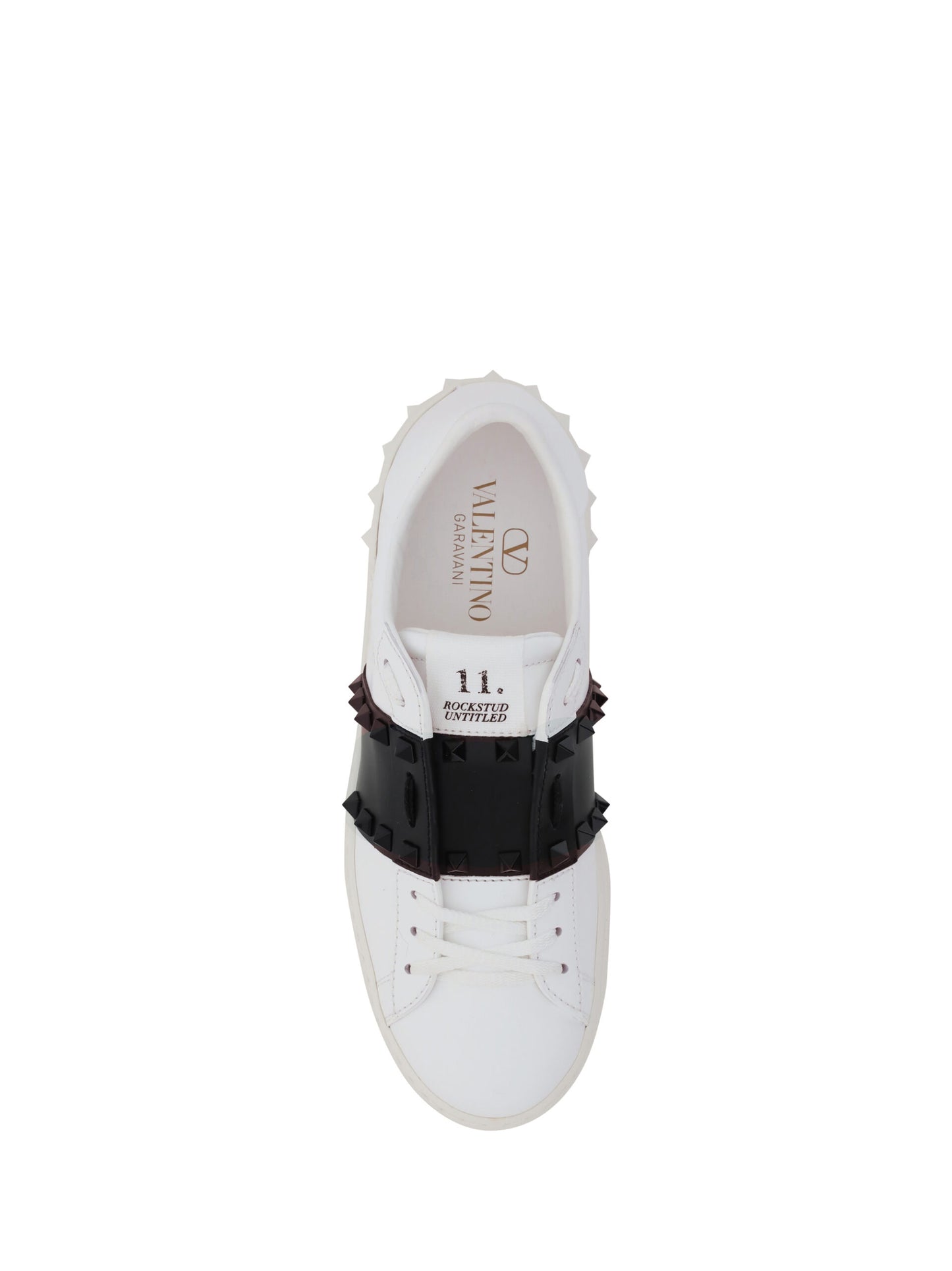 Step out in style with these stunning sneakers from Valentino. Crafted from 100% genuine calf leather, these low-top shoes offer a sleek aesthetic with their timeless white and black color scheme. A slip-on style ensures ease of wear while the round toe and contrasting band add a touch of elegance. The iconic Rockstud studs provide a distinctive Valentino touch, applied meticulously on the back and front band. Perfectly constructed with a knurled sole for comfort and durability, these sneakers embody casual luxury and Italian craftsmanship. Suitable for a variety of occasions, they will become a staple in your wardrobe.