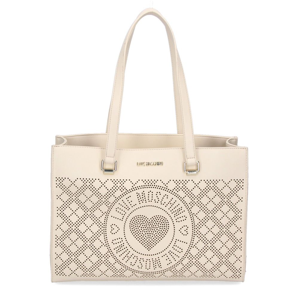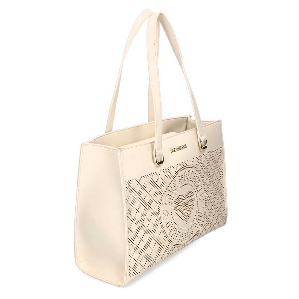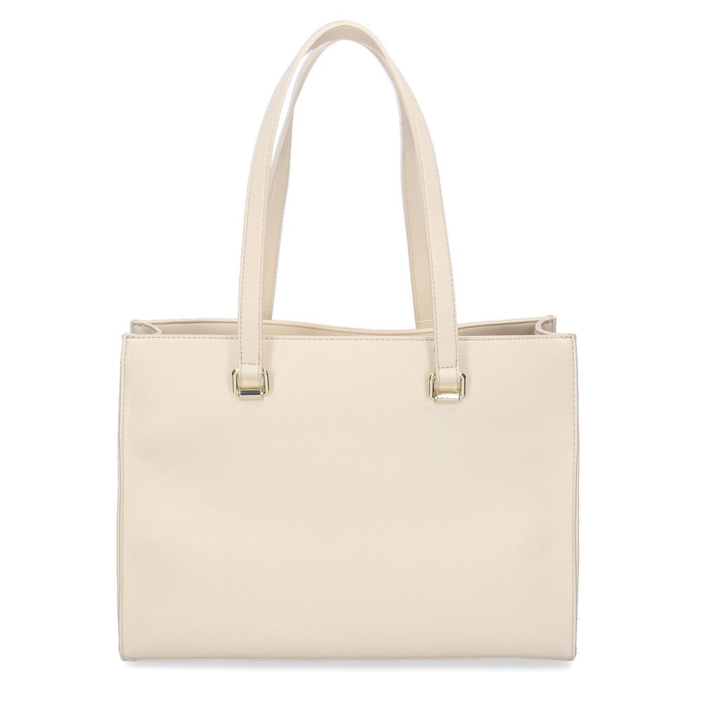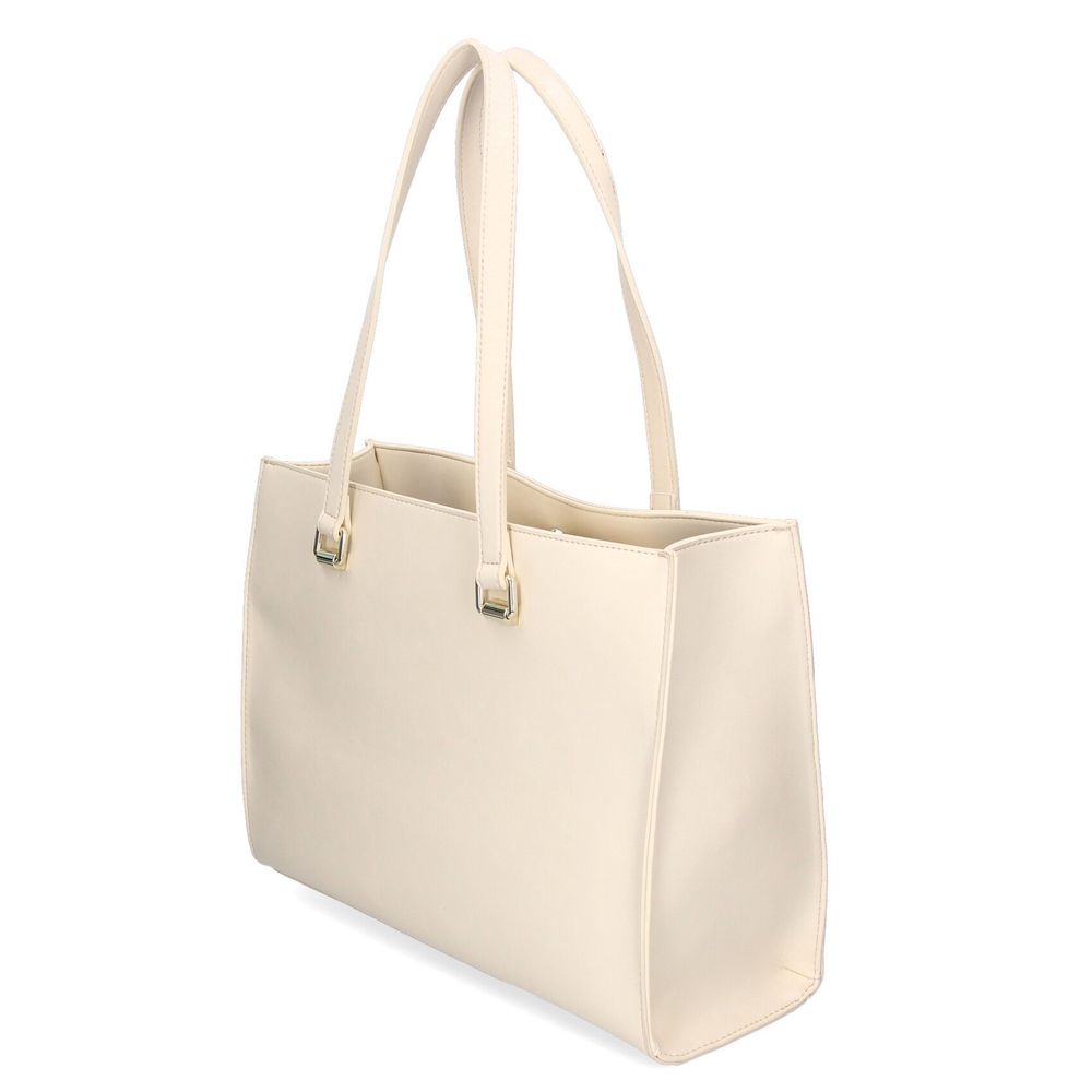 Step out in style with this exquisite white faux leather shopping tote that radiates elegance with its sleek design and silver hardware. Accentuated with a striking logo on the front, it’s the perfect blend of fashion and functionality for the modern woman.