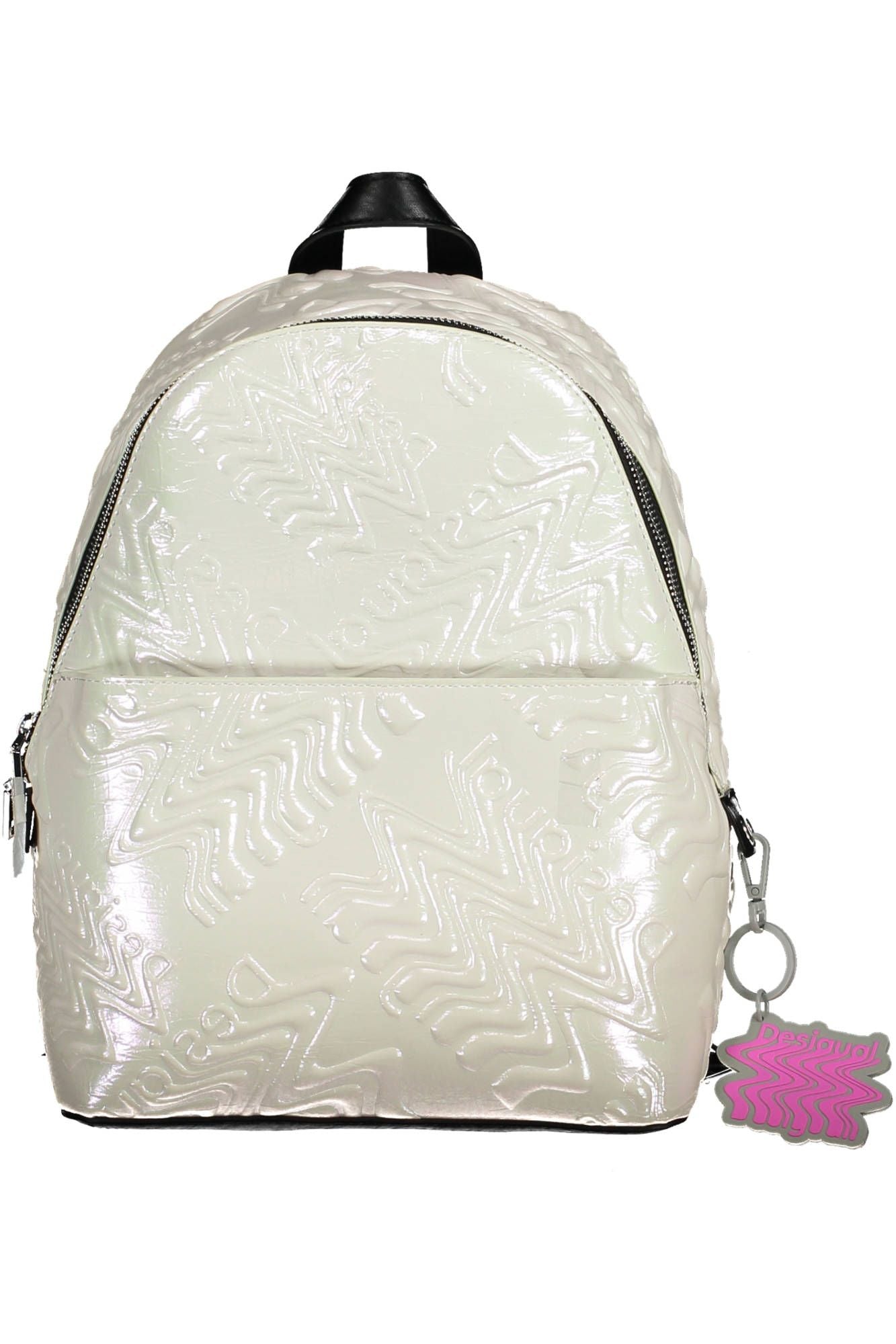 Embrace the essence of playful elegance with this Desigual white backpack, crafted for those who adore a touch of iridescence in their everyday carry. Designed with practicality in mind, it features one sturdy handle, adjustable shoulder straps for ease of carrying, and multiple pockets to keep your essentials organized. The contrasting details add a modern twist to this backpack, while the zip closure ensures your belongings are secure. Finished with the iconic Desigual logo, this backpack is not just a carryall, but a statement of style.